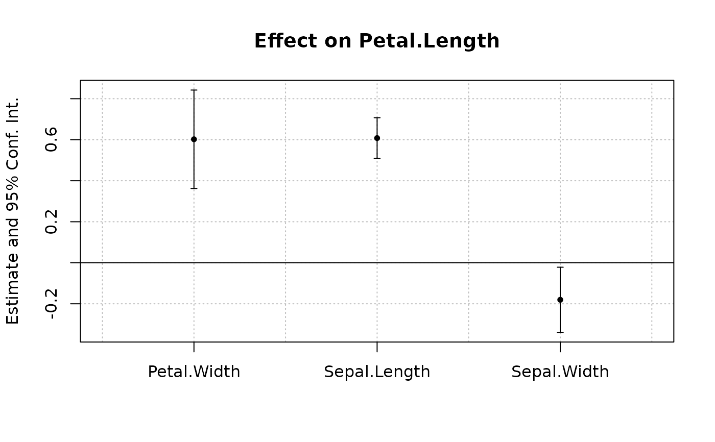 est = feols(Petal.Length ~ Petal.Width + Sepal.Length +