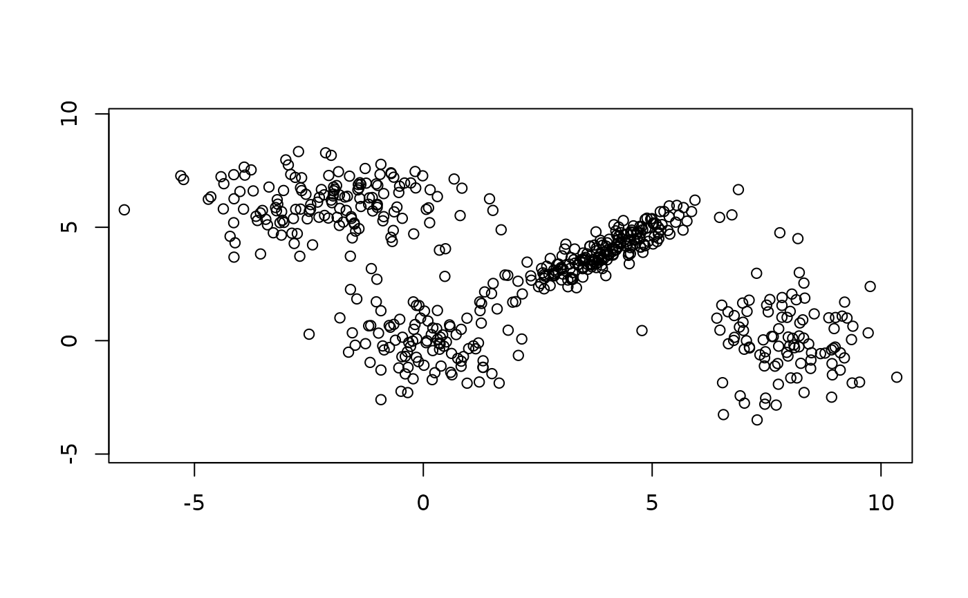 ex2 <- flexmix(Nclus ~ 1, k = 6, model = FLXMCmvnorm(diagonal = FALSE))
