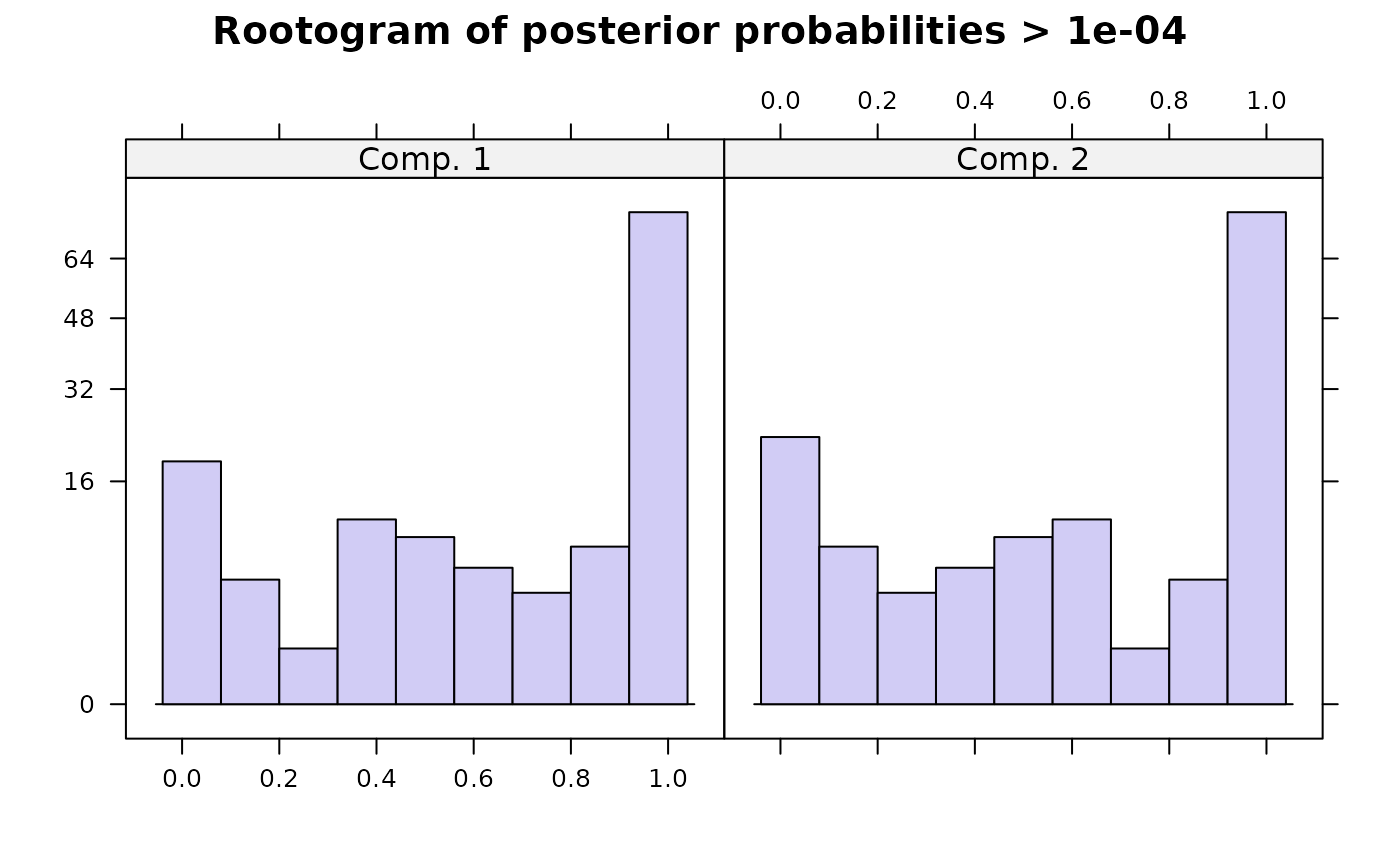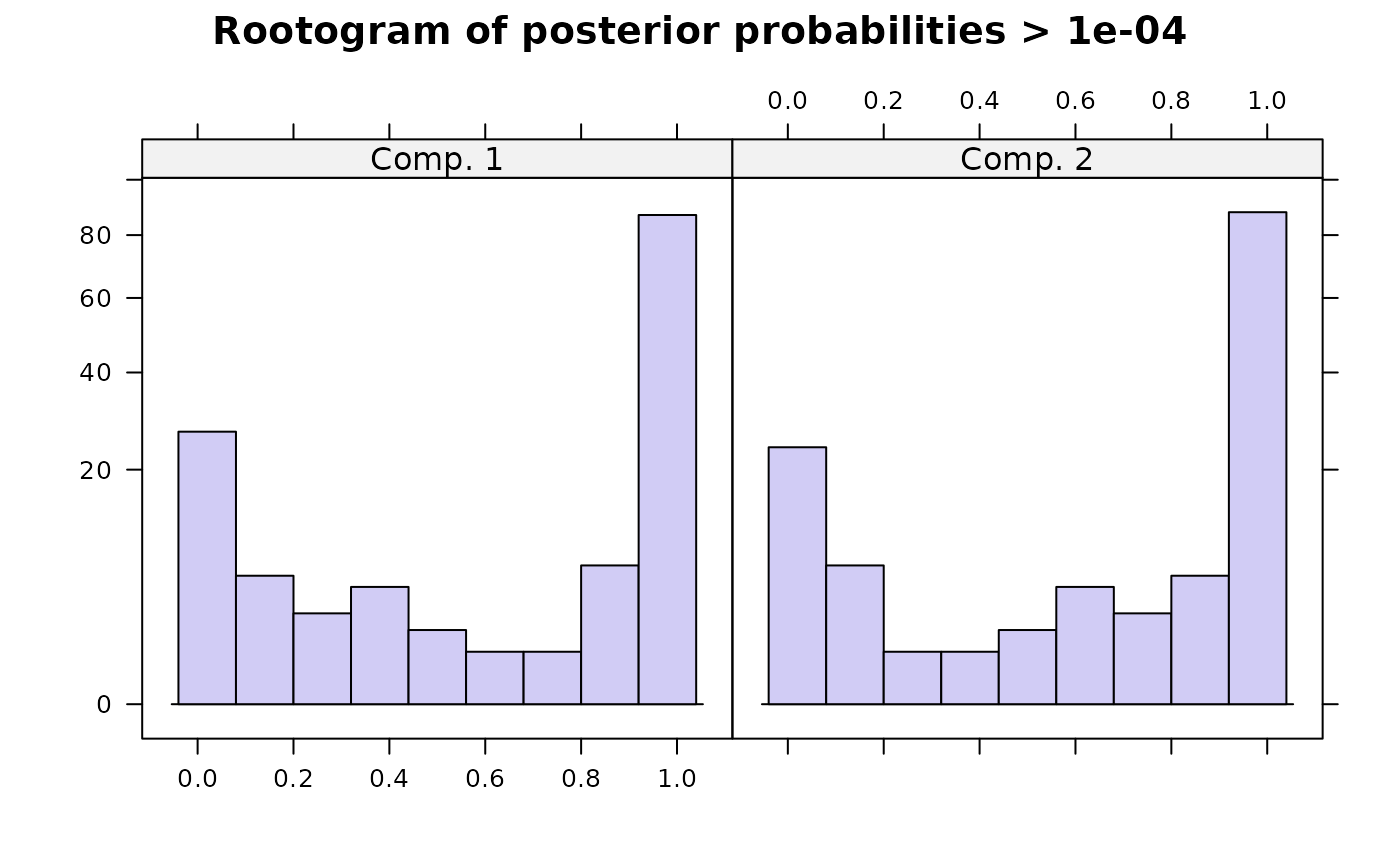 cluster, the number of observations with a posterior probability