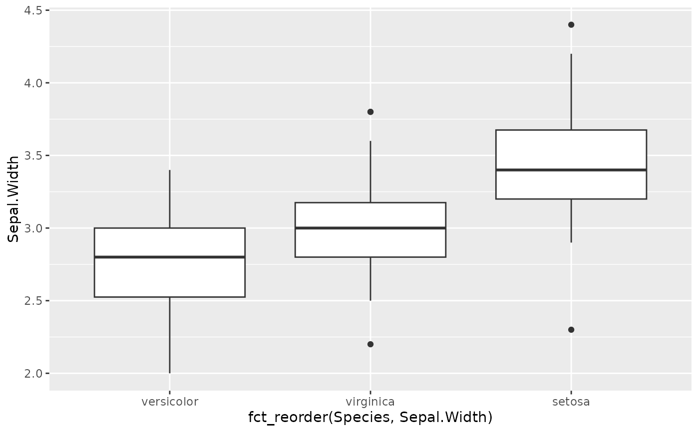 boxplot(Sepal.Width ~ fct_reorder(Species, Sepal.Width), data = iris)