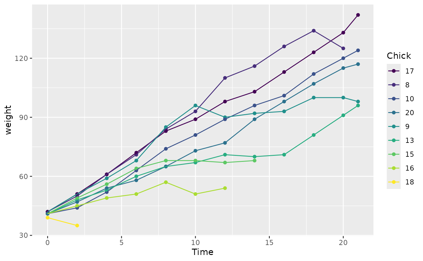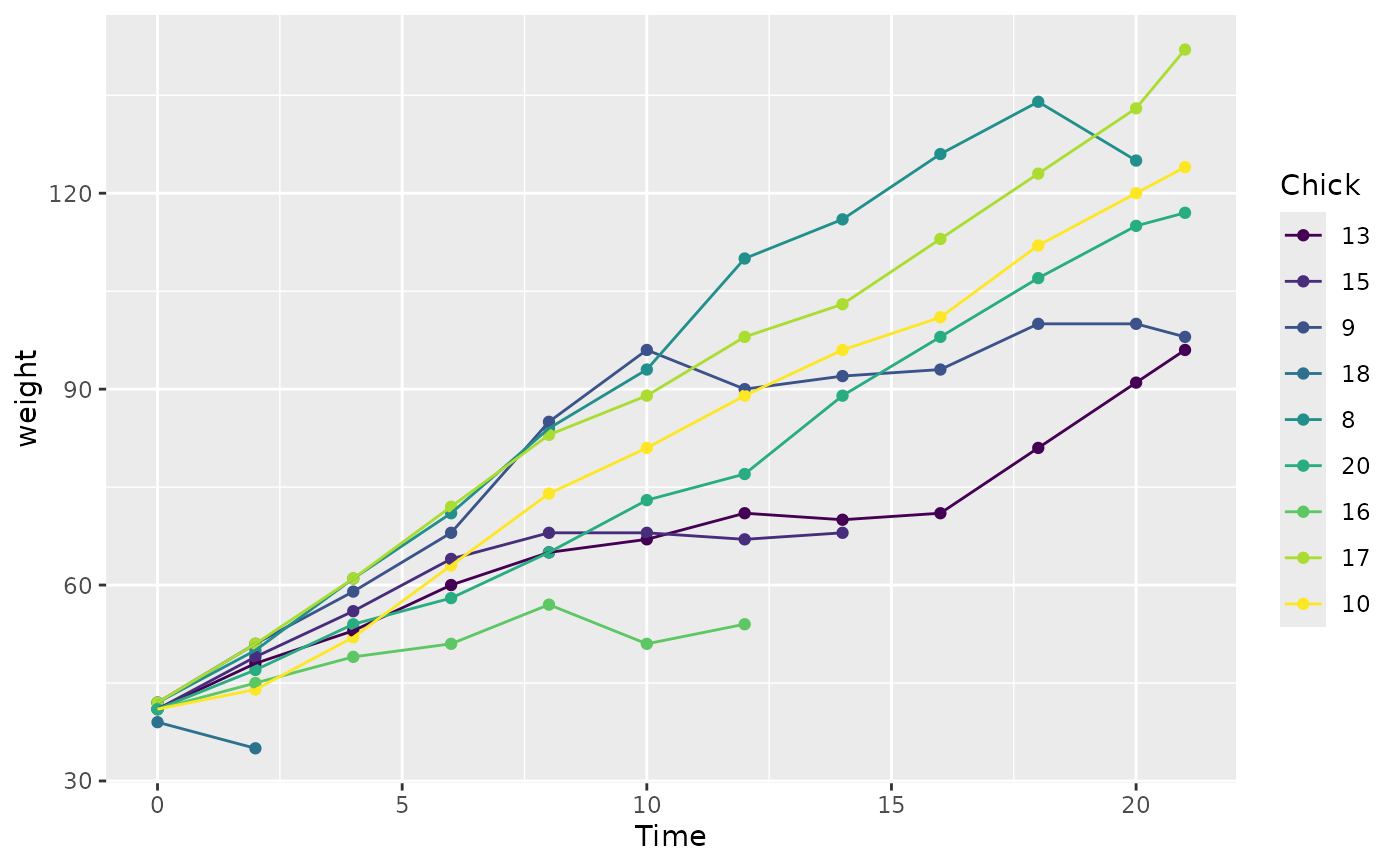 chks <- subset(ChickWeight, as.integer(Chick) < 10)