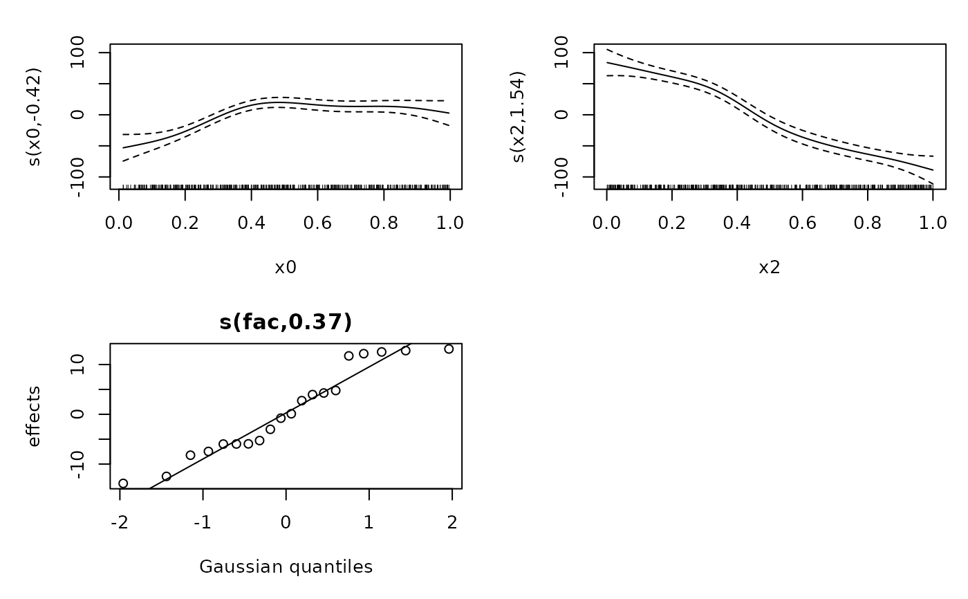 br <- gamm4(y~s(x0)+x1+s(x2),data=dat,random=~(1|fac))