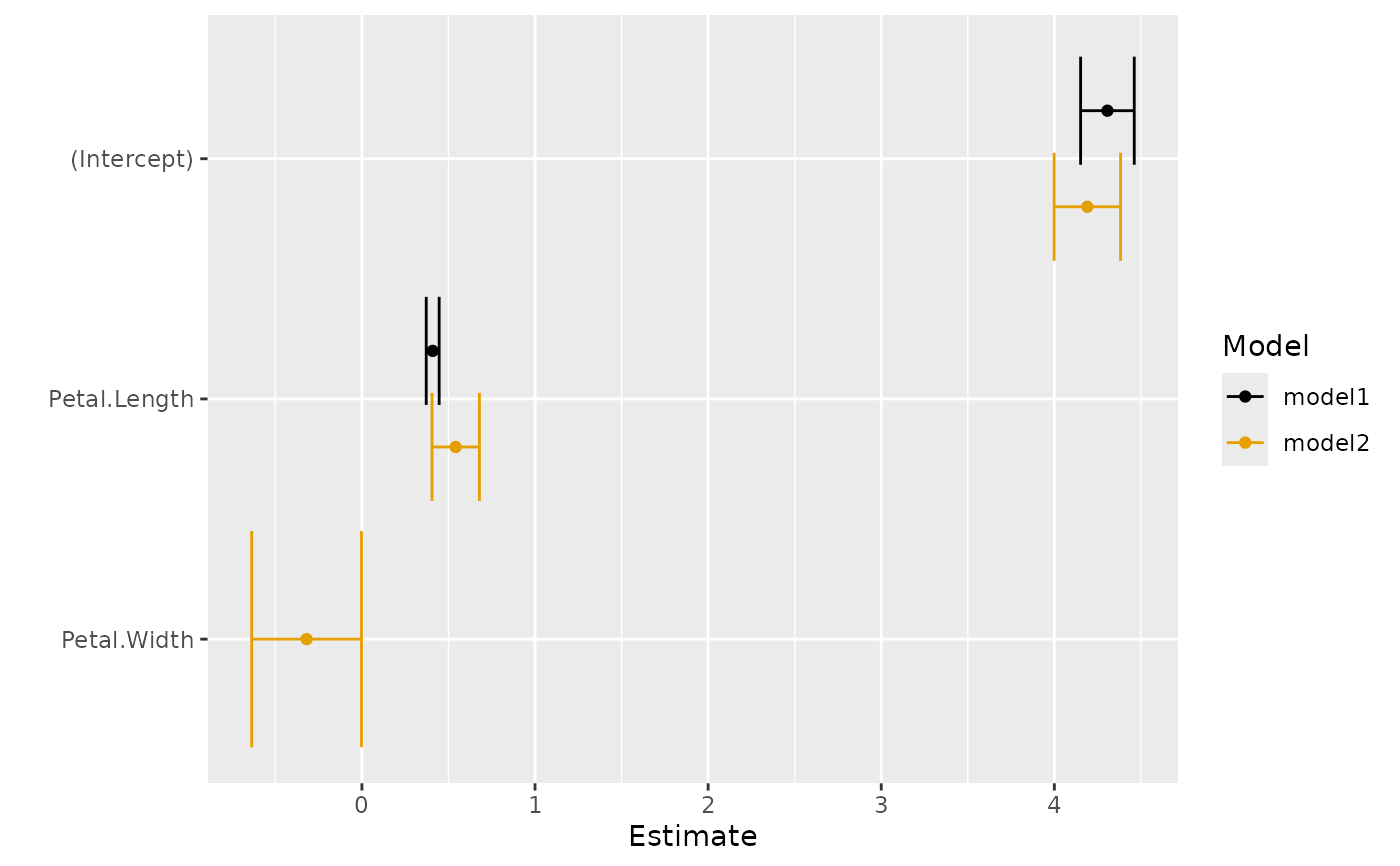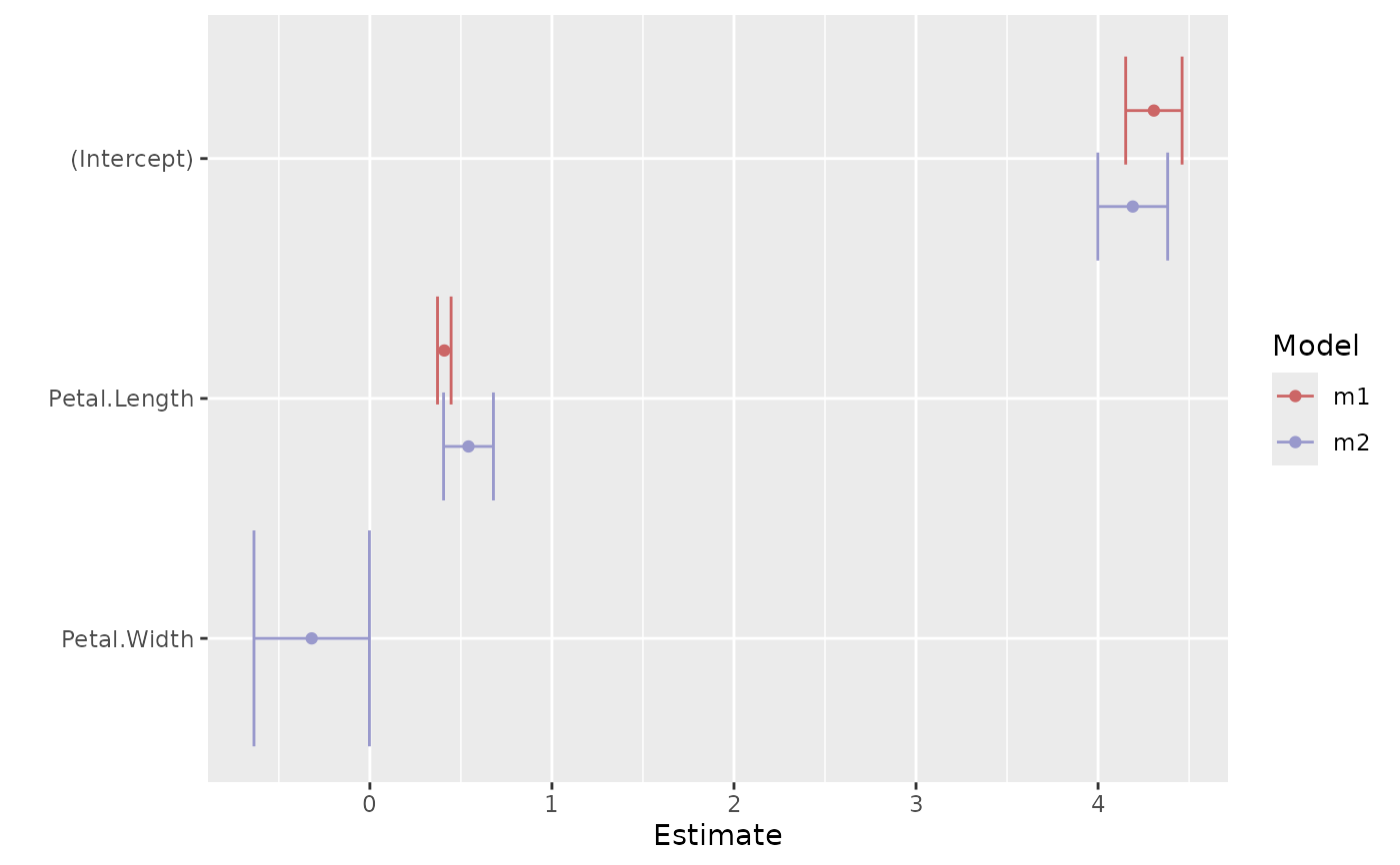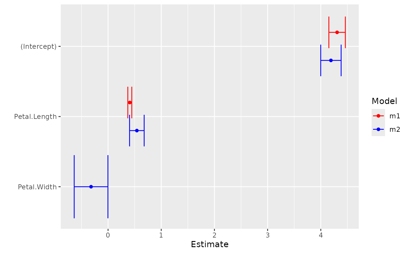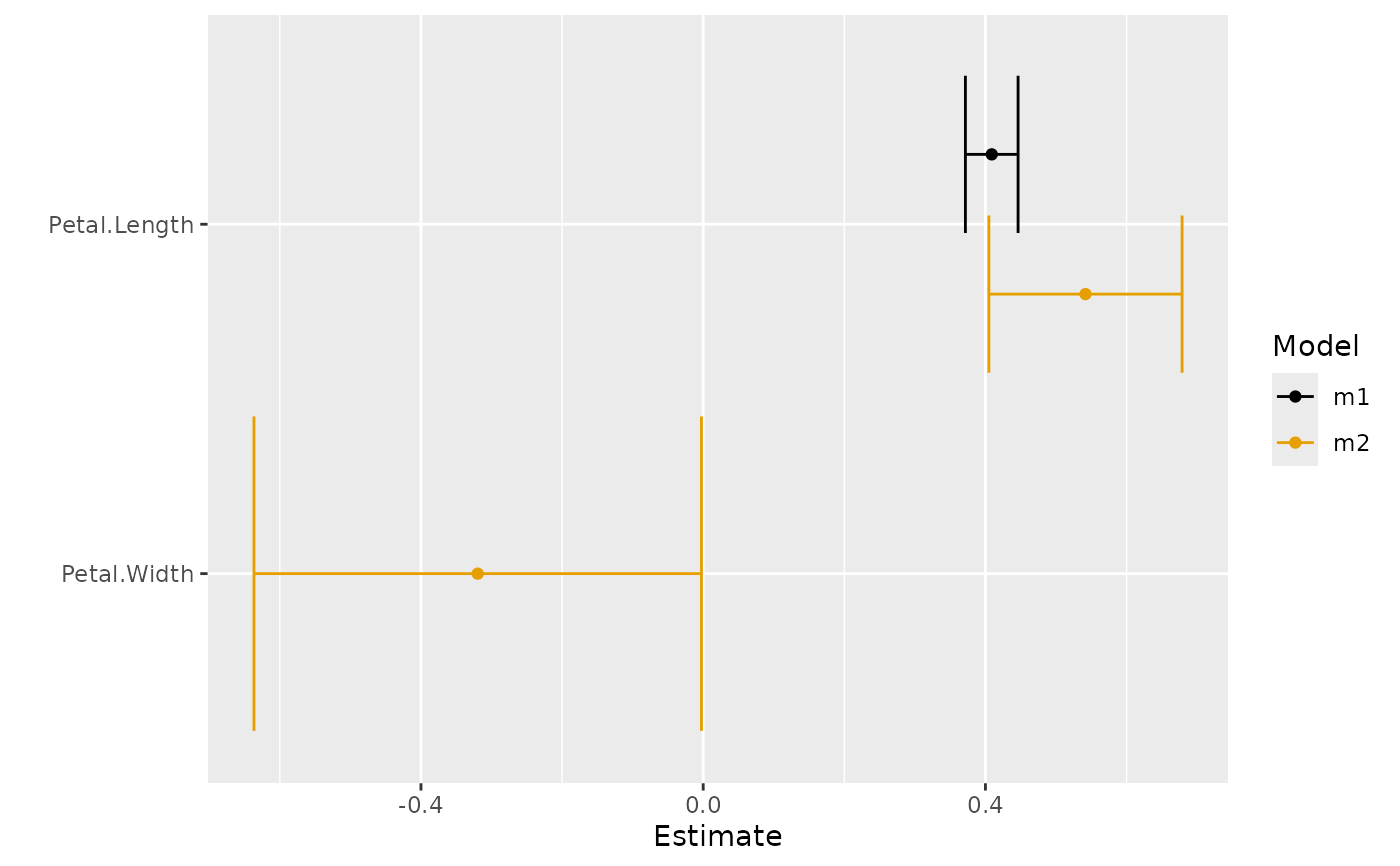 One or more models can be supplied, and if the parameters have the same names across models, they will be grouped together allowing for easy comparison.