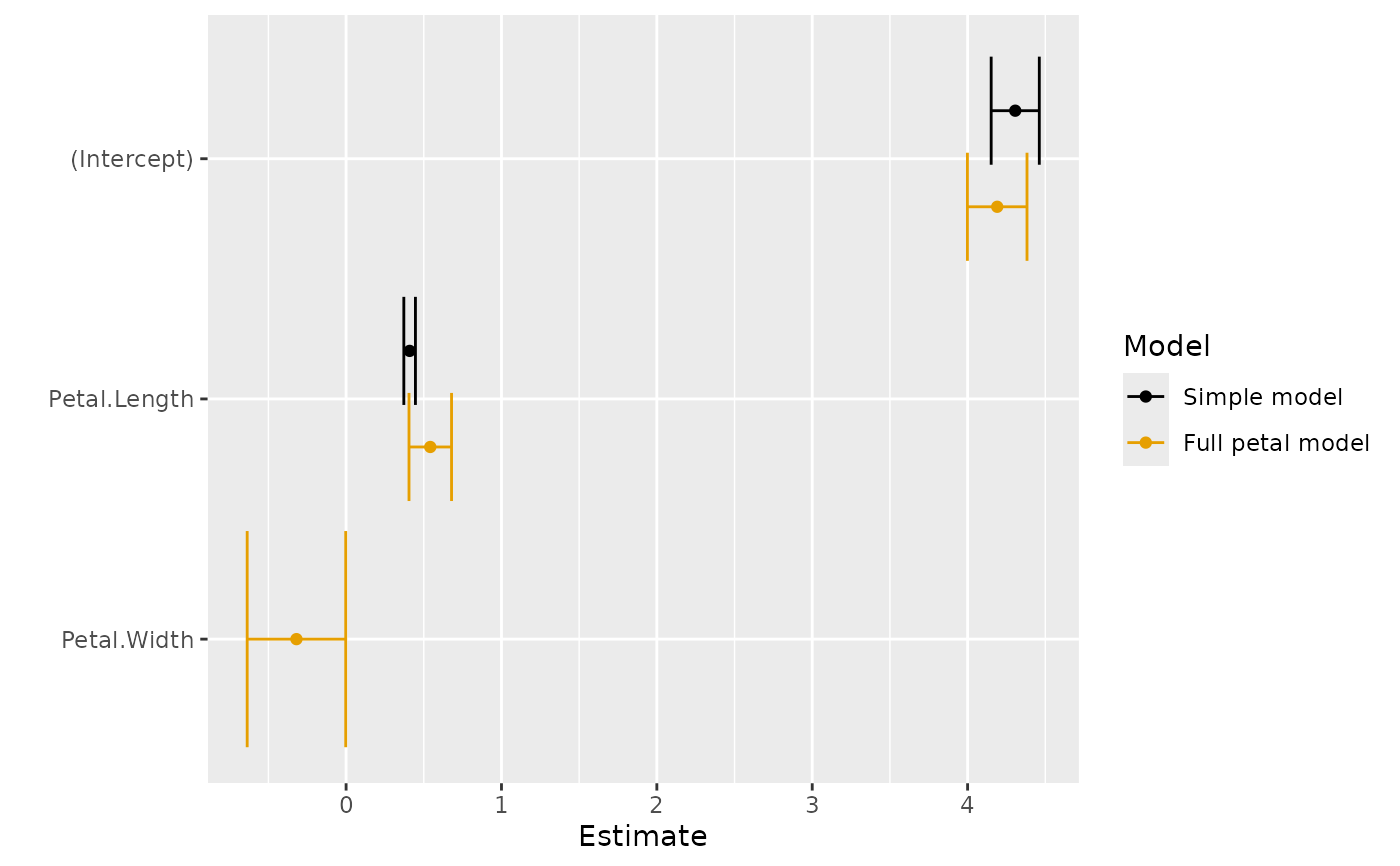 plotEst(`Simple model` = m1, `Full petal model` = m2)