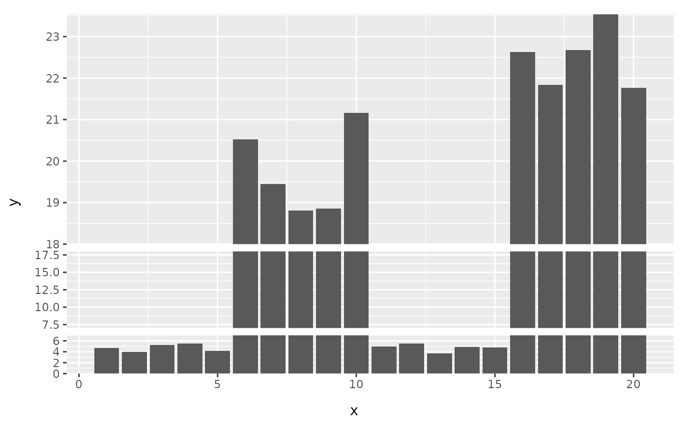 scale_y_cut(breaks, which = NULL, scales = NULL, expand = FALSE, space = 0.1)a numeric or numeric vector, the points to be divided
