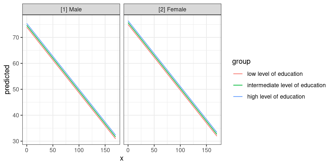 #> 0 | low level of education | [1] Male | 73.95 | 69.35, 78.56