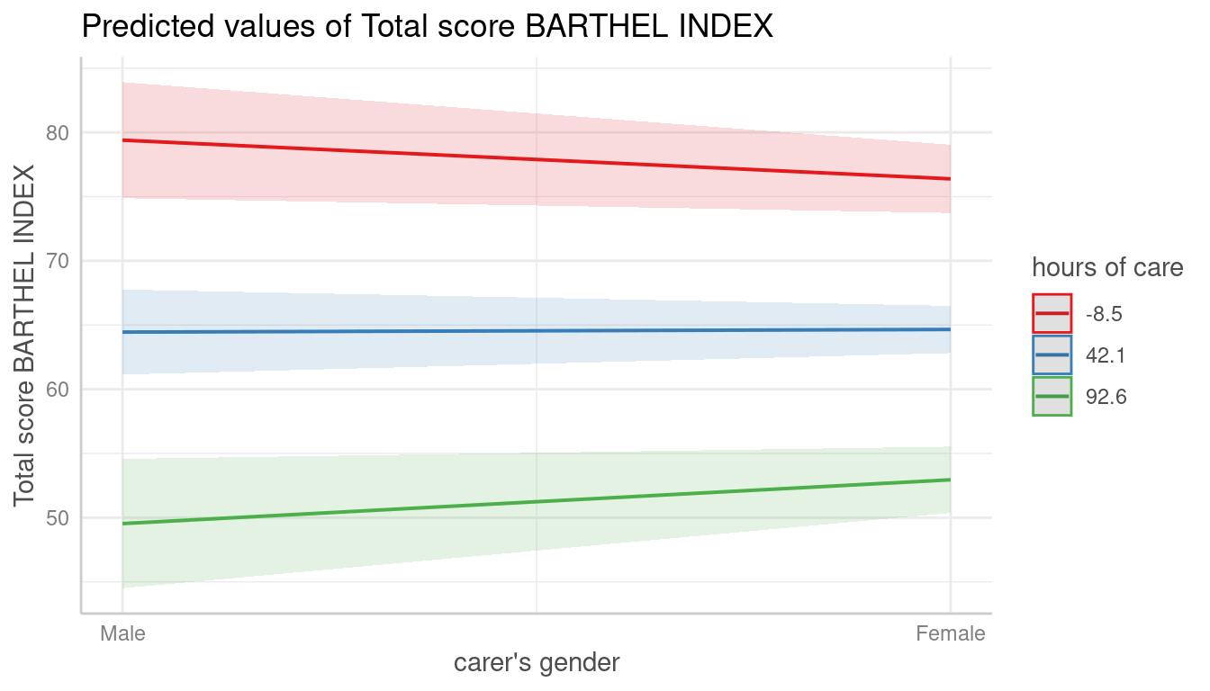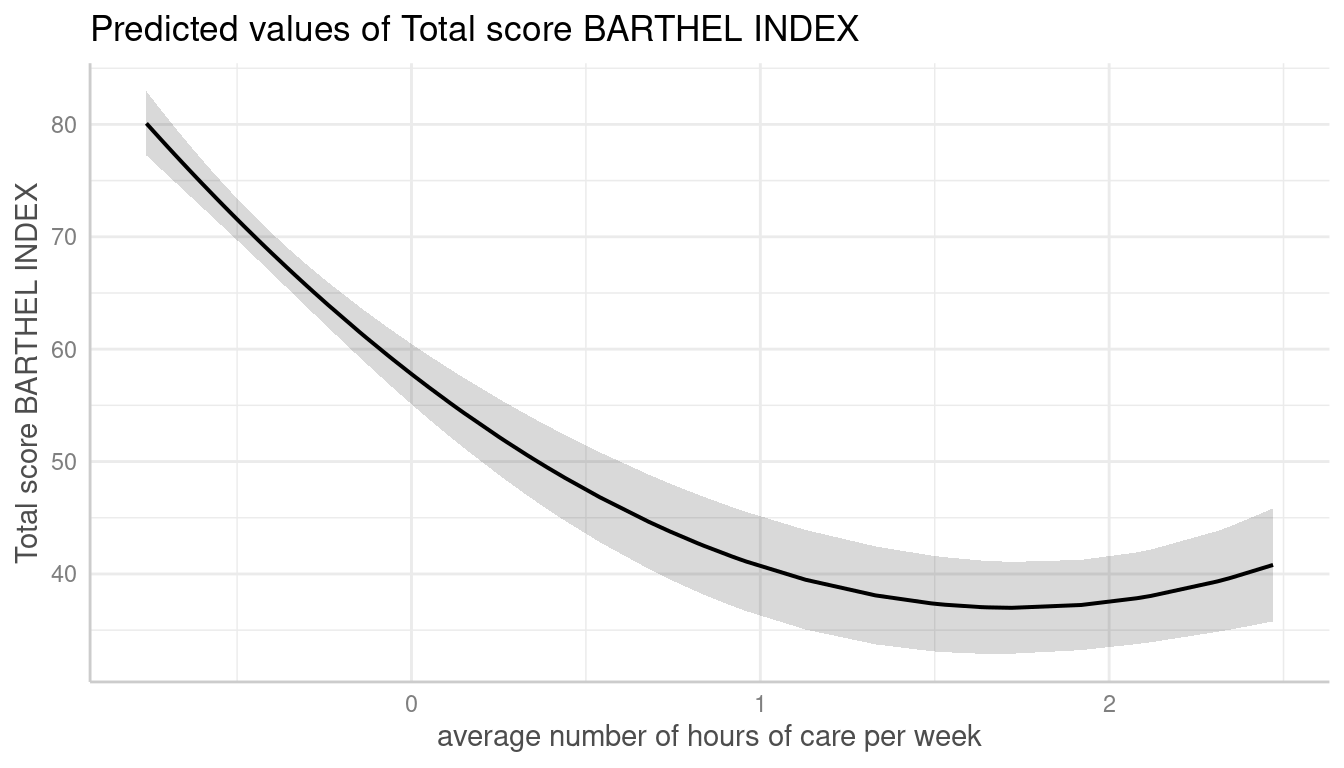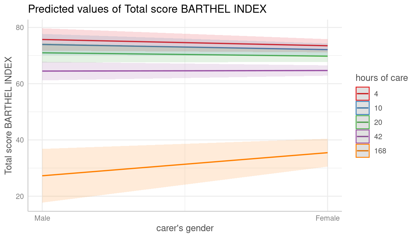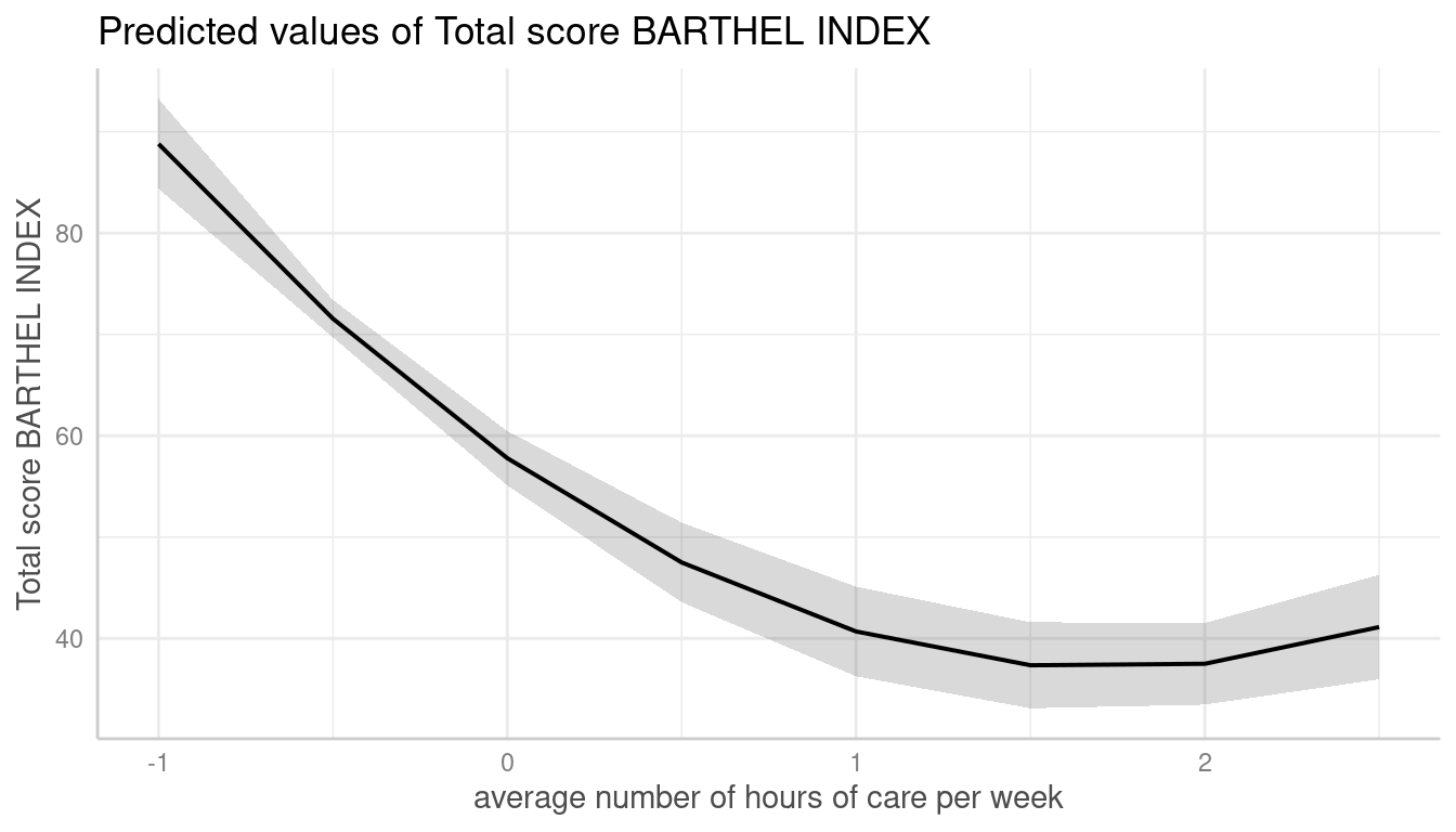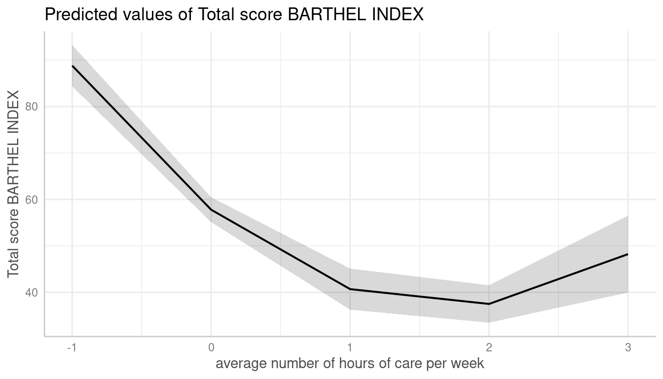 #> # Predicted values of Total score BARTHEL INDEX