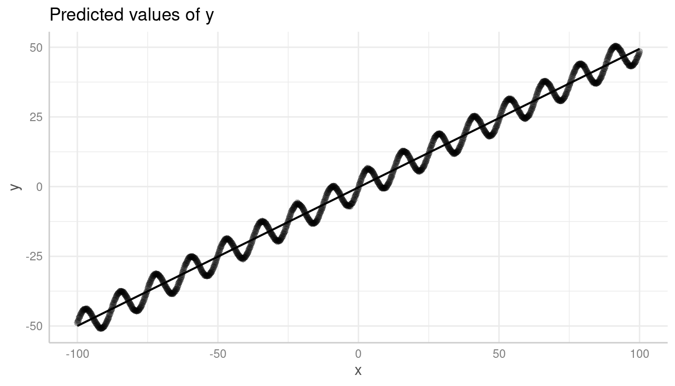 This, however, might be misleading in some cases when creating residual plots. In the next example, we have a sinus-curve pattern for the residuals, which is hidden by default: