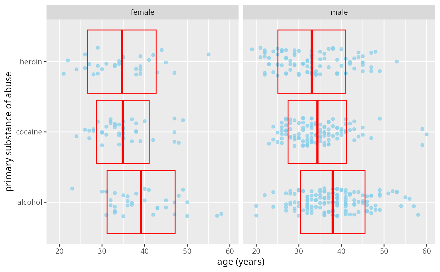 gf_jitter(age ~ substance, data = HELPrct,
