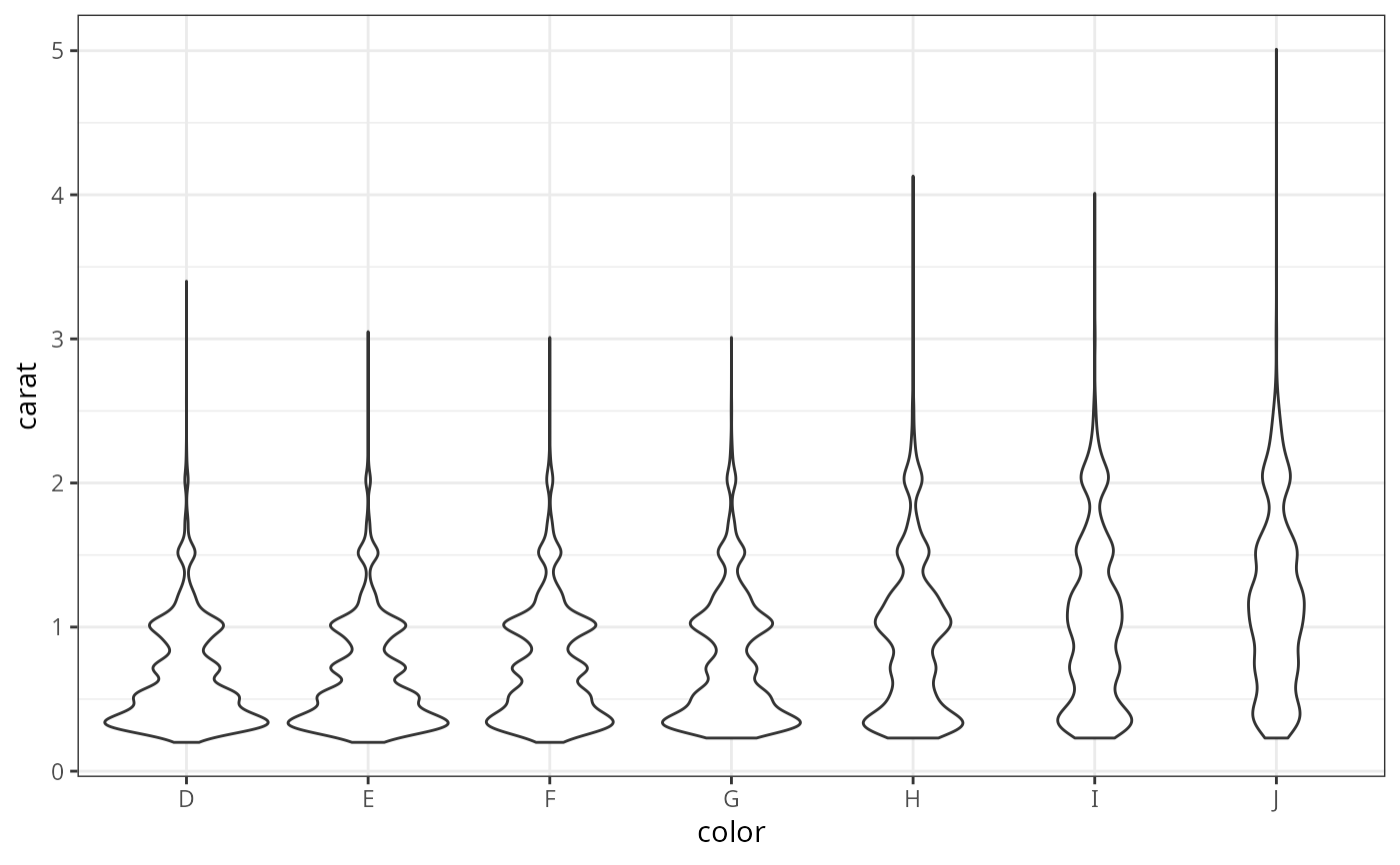 gf_violin(color ~ carat, data = diamonds)