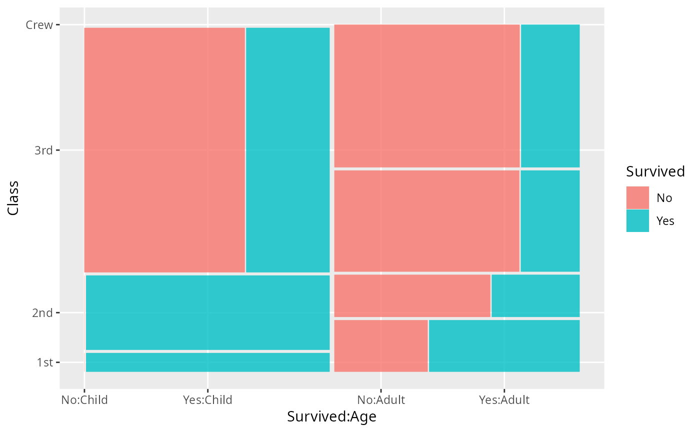 geom_mosaic(aes(x = product(Class), conds = product(Age), fill = Survived))