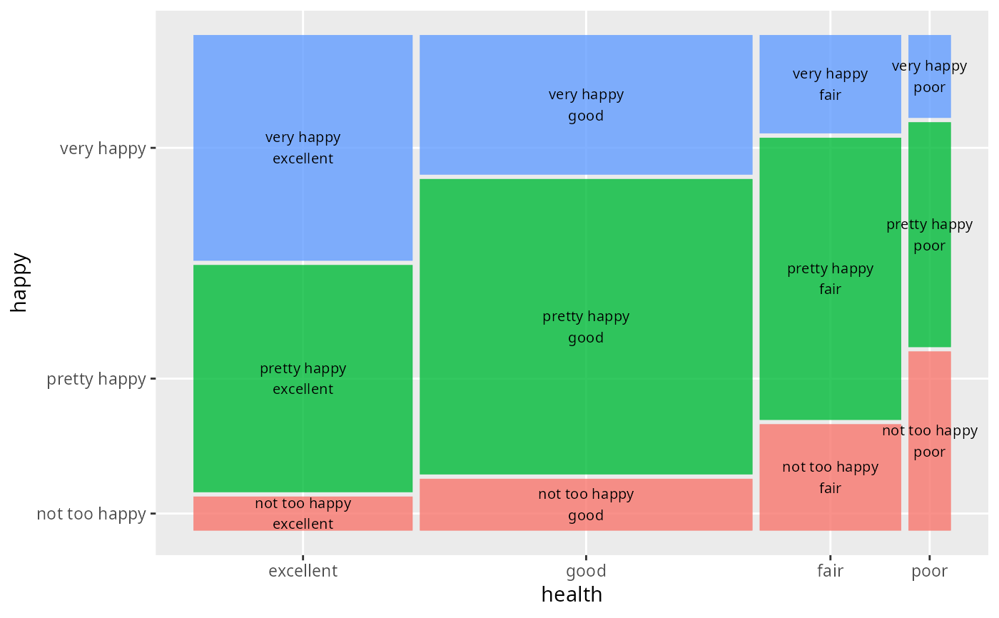 geom_mosaic_text(aes(x = product(happy, health)), na.rm = TRUE, check_overlap = TRUE)