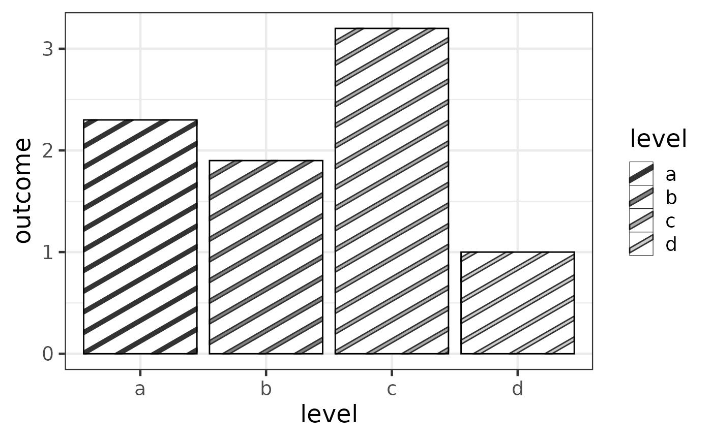 aes(level, outcome, pattern_fill = level),