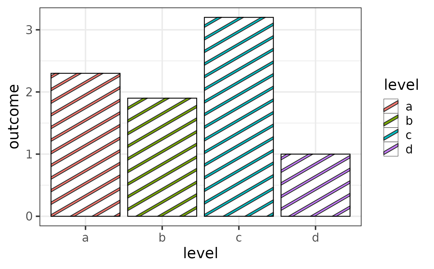 aes(level, outcome, pattern_fill = level),