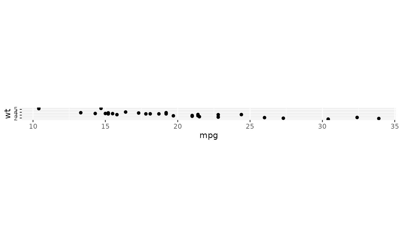 p <- ggplot(mtcars, aes(mpg, wt)) + geom_point()