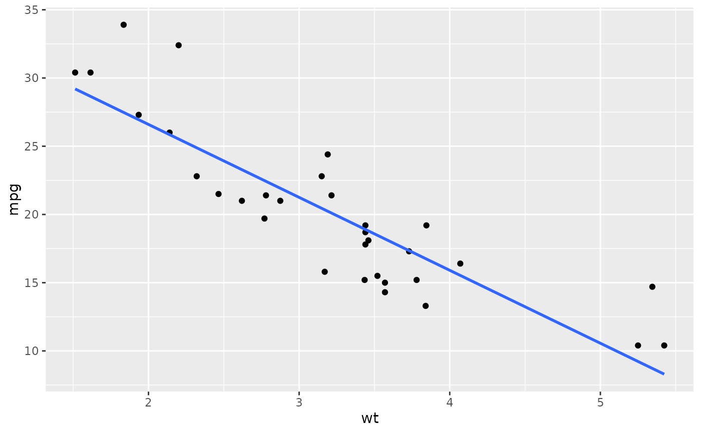 p <- ggplot(mtcars, aes(mpg, wt)) +
