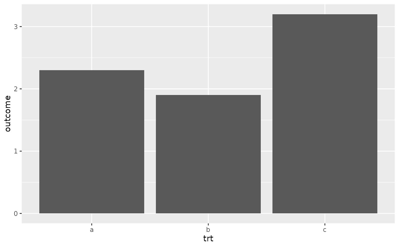 df <- data.frame(trt = c("a", "b", "c"), outcome = c(2.3, 1.9, 3.2))
