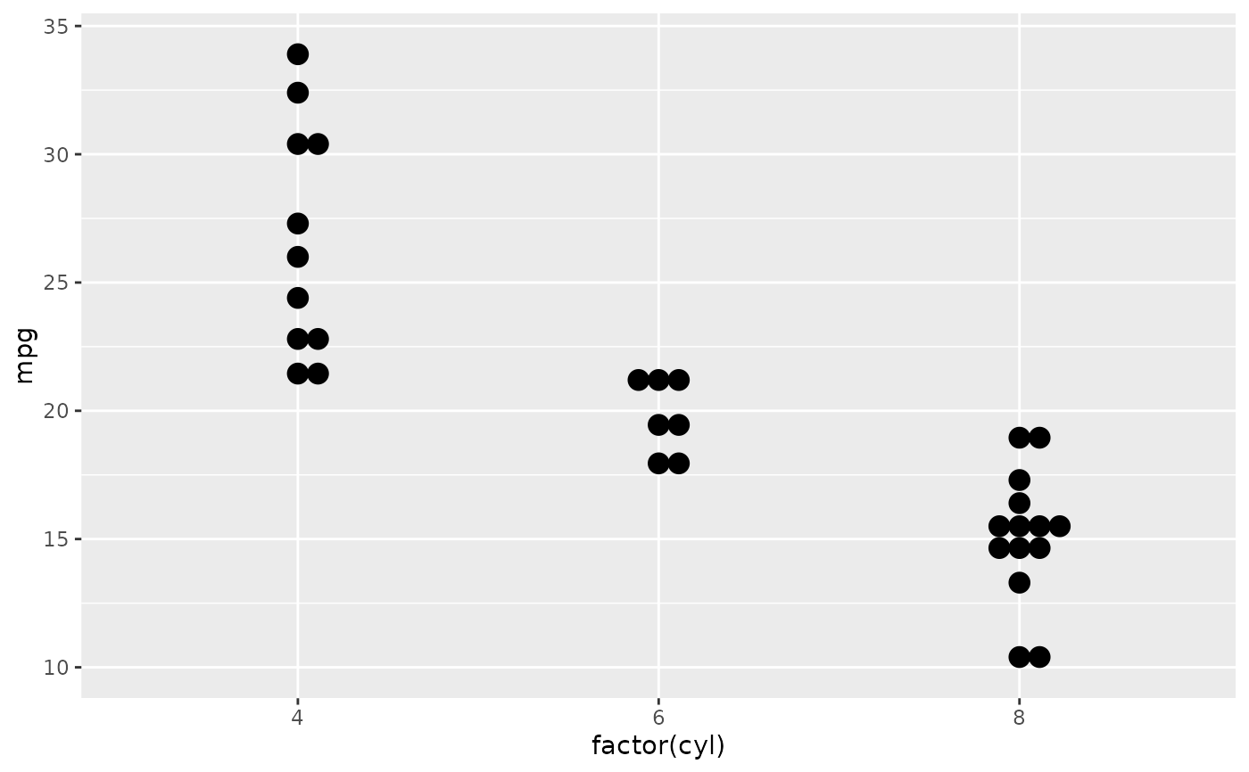 ggplot(mtcars, aes(x = factor(cyl), y = mpg)) +