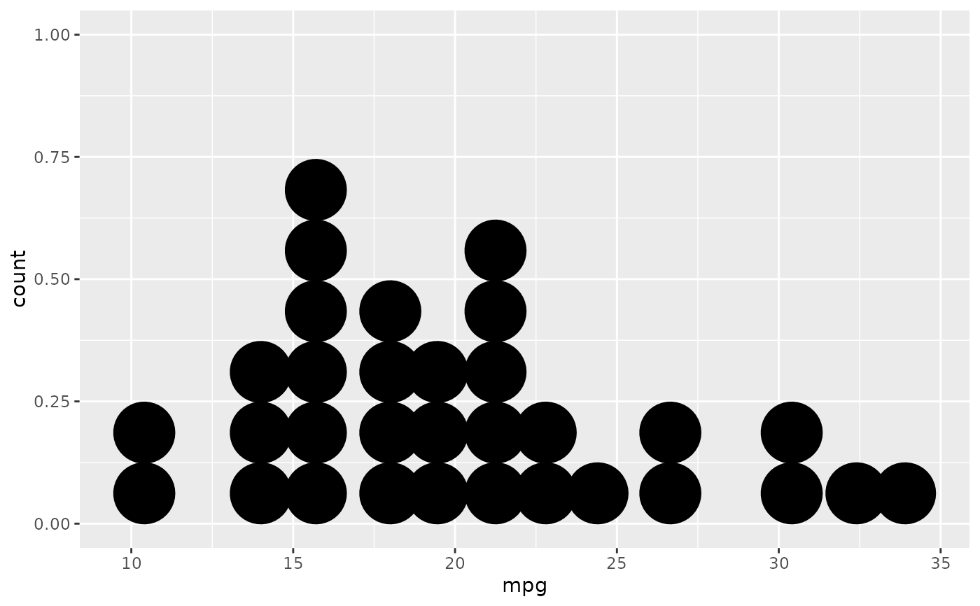 geom_dotplot(stackgroups = TRUE, binwidth = 1, method = "histodot")
