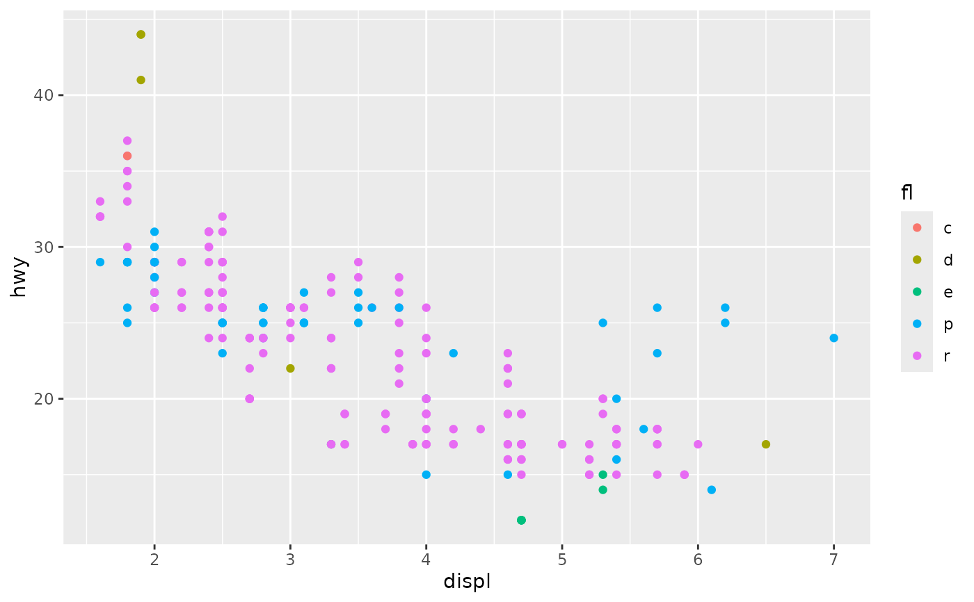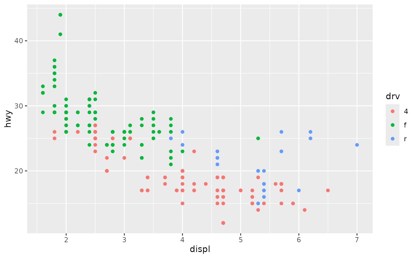 print(ggplot(mpg, aes(displ, hwy, colour = .data[[colour]])) +