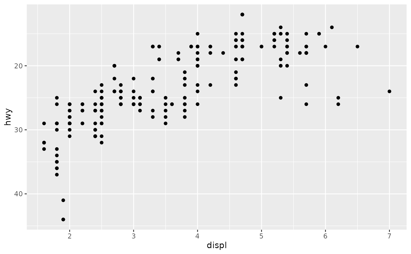 p1 <- ggplot(mpg, aes(displ, hwy)) +