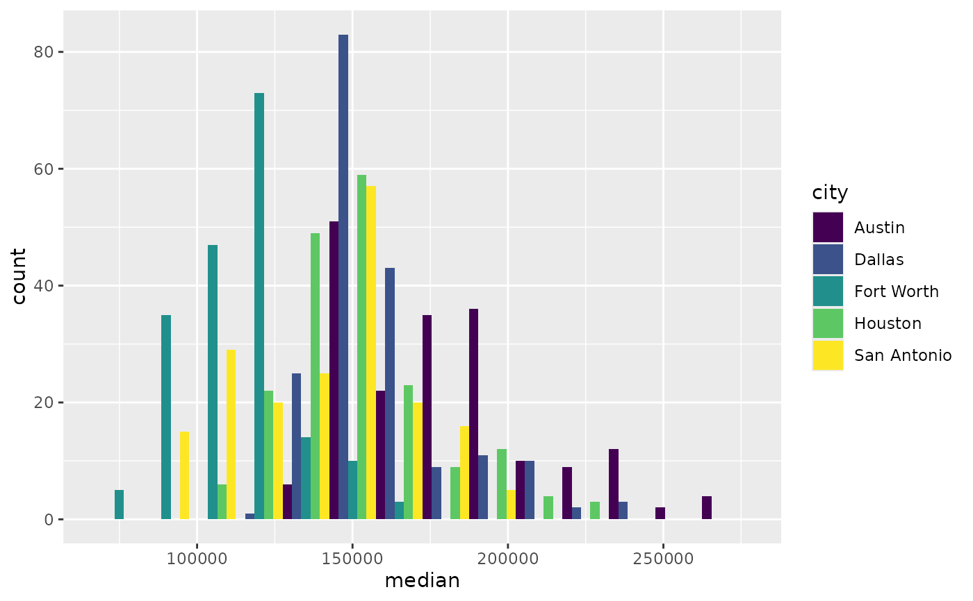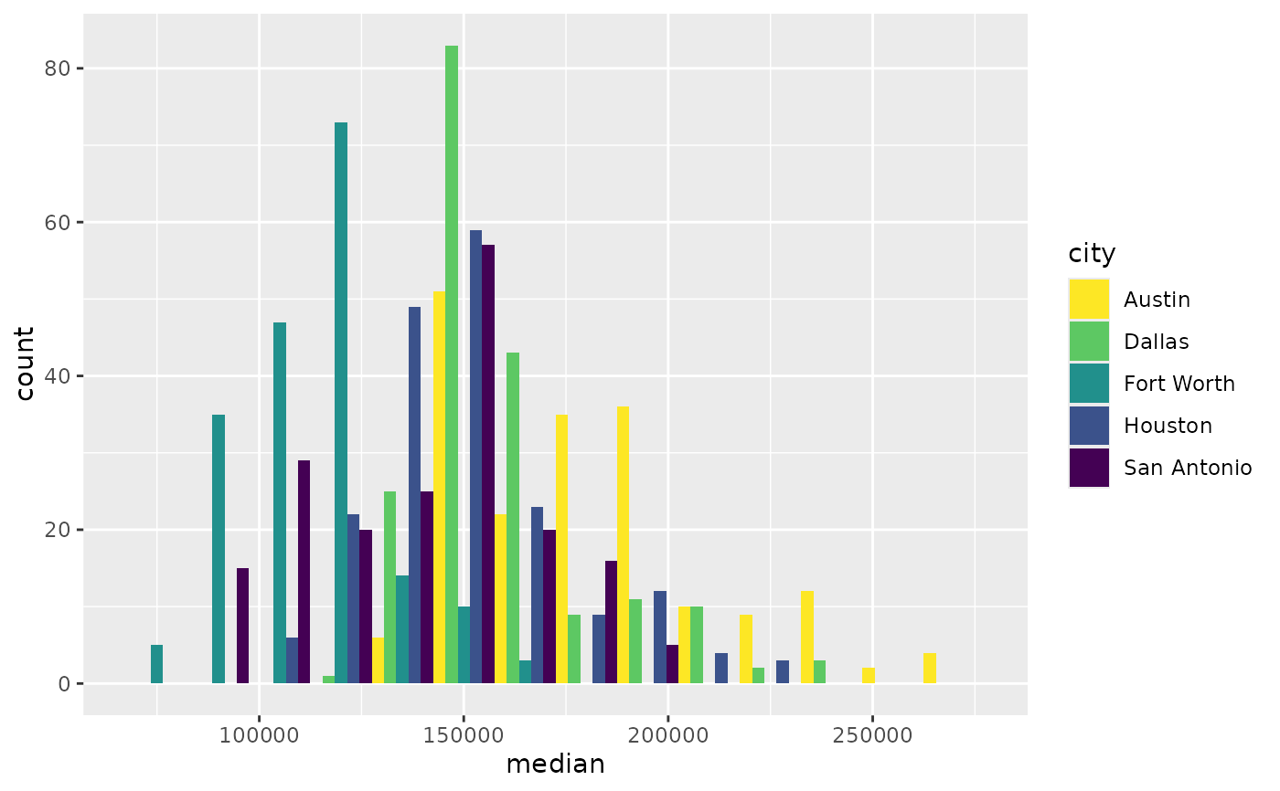 p <- ggplot(txsamp, aes(x = median, fill = city)) +