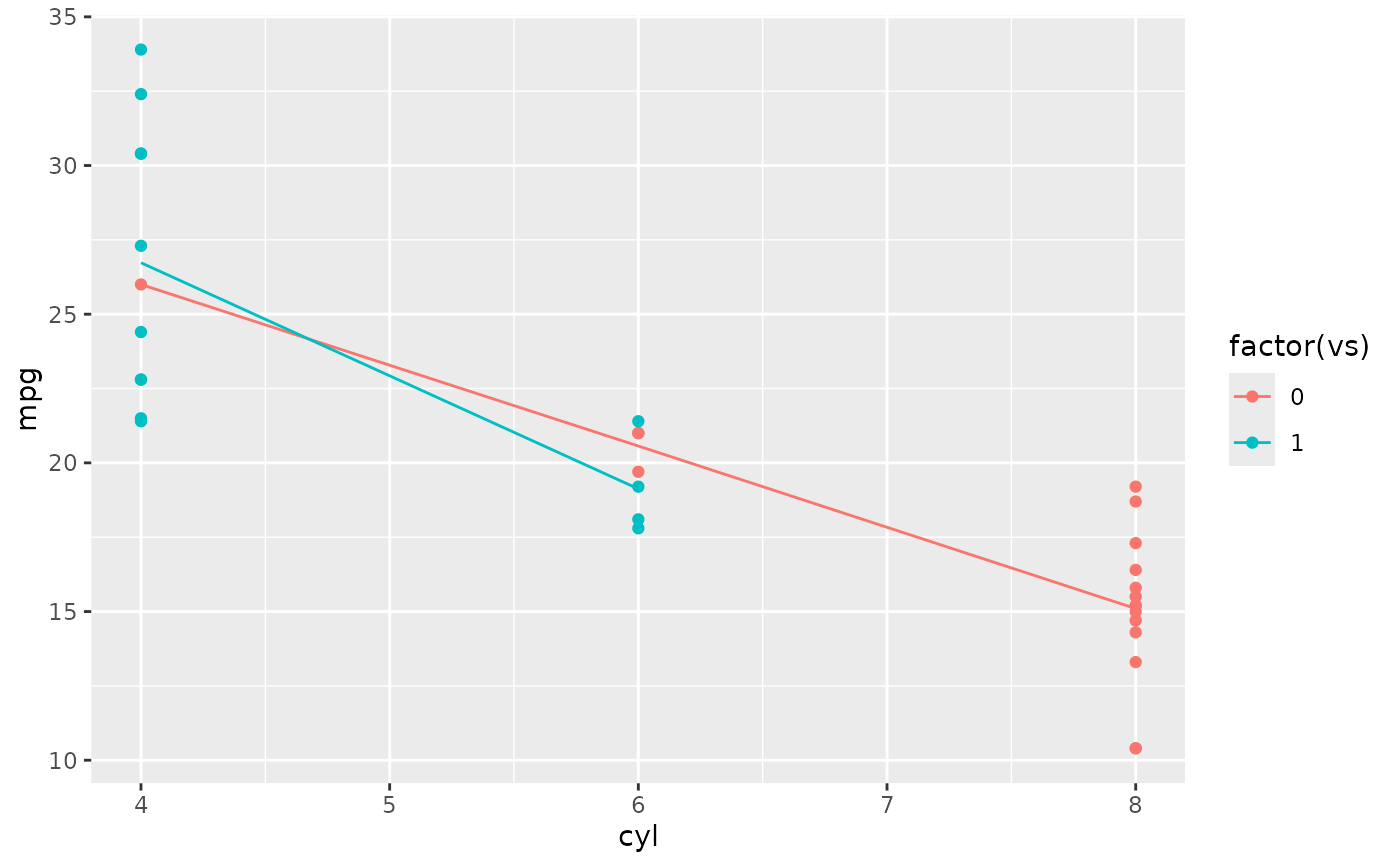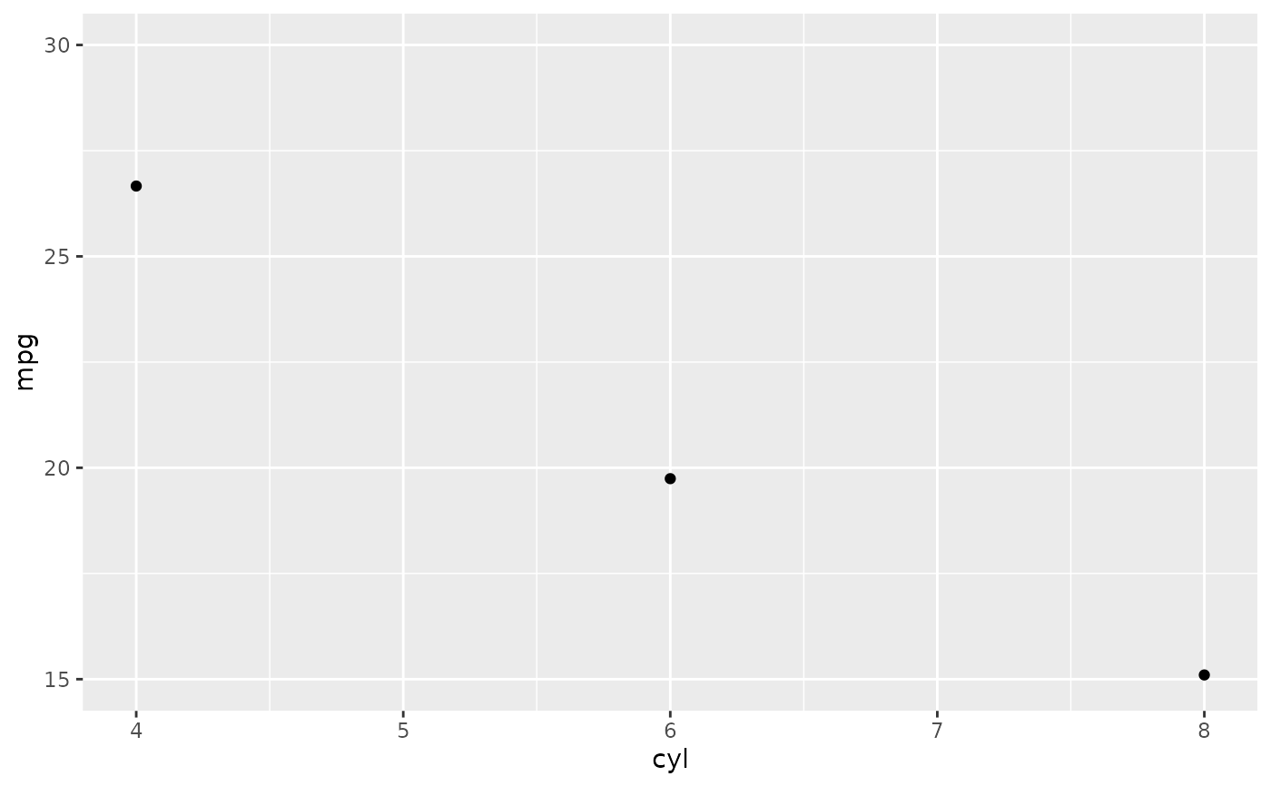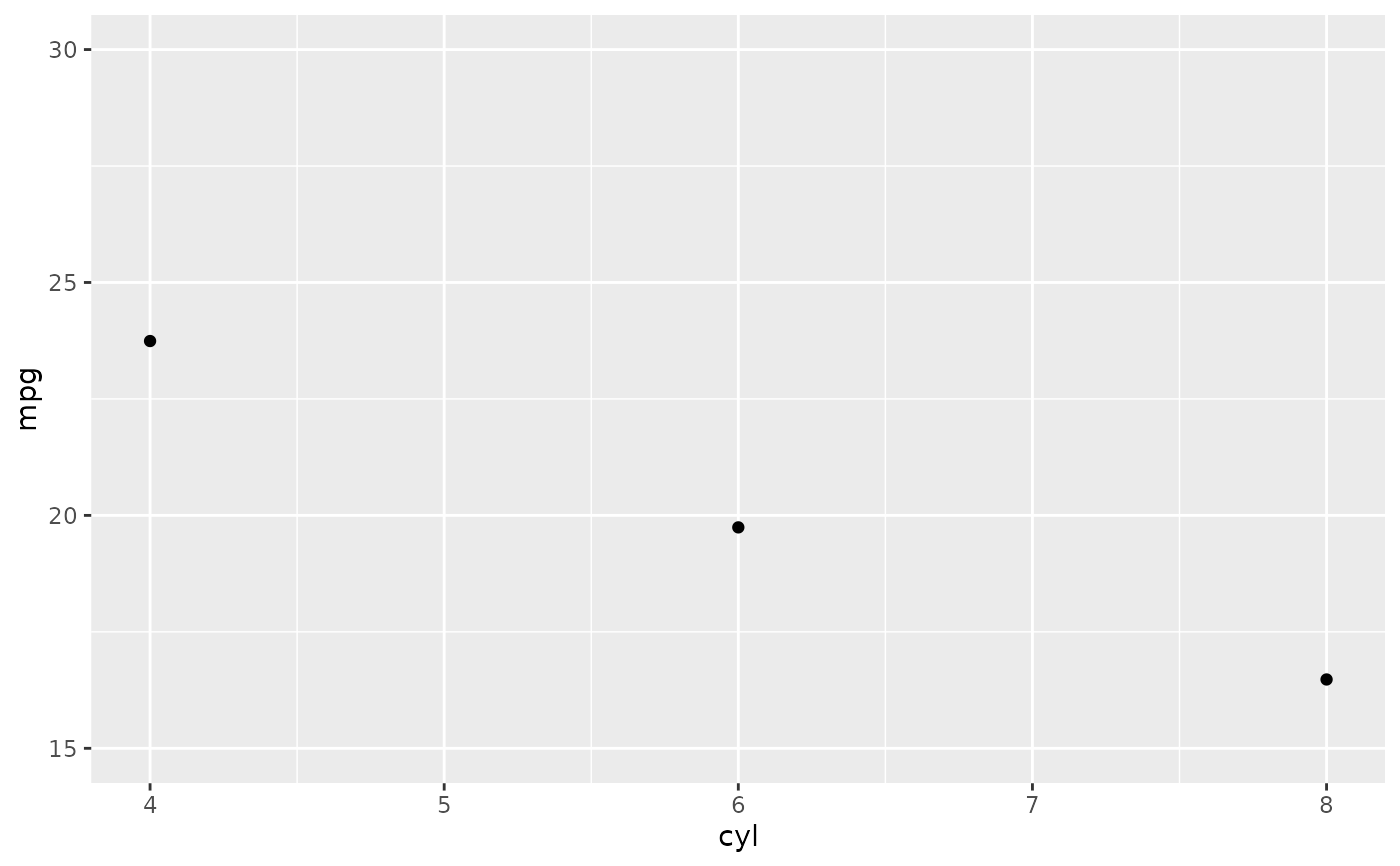p <- ggplot(mtcars, aes(cyl, mpg)) +