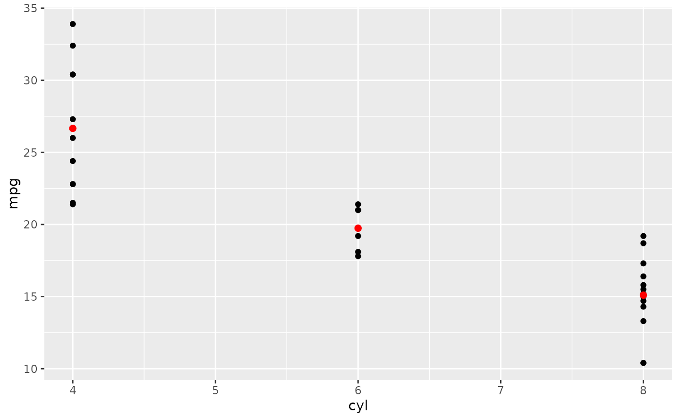 d + stat_summary(fun = "mean", colour = "red", size = 2, geom = "point")