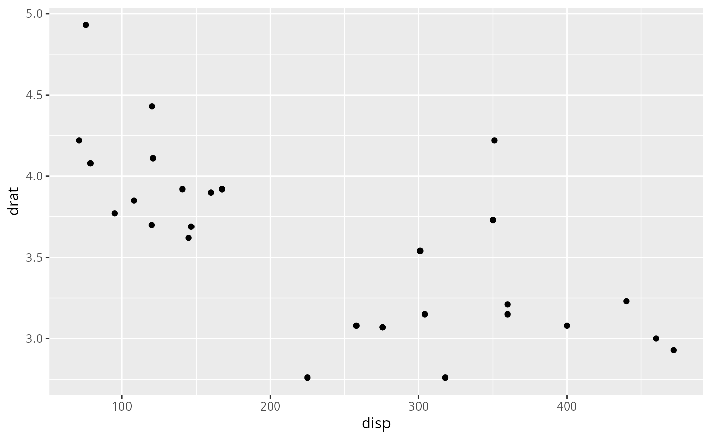 scatter_by(mtcars, disp, drat)