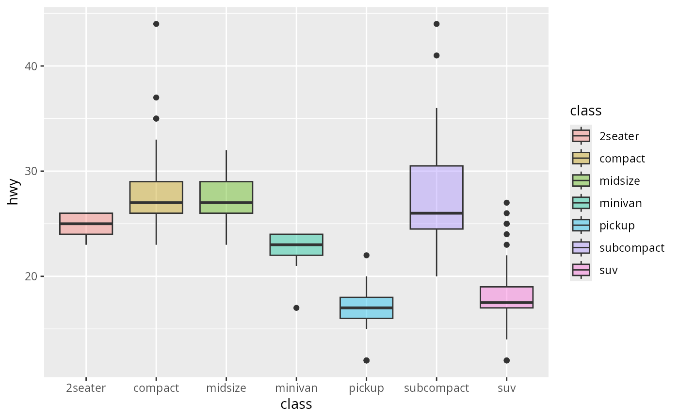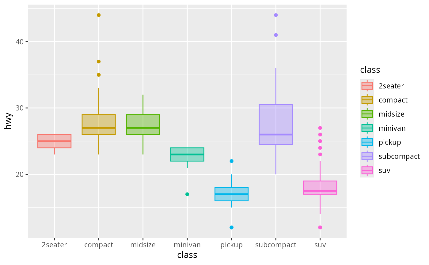 geom_boxplot(aes(colour = class, fill = after_scale(alpha(colour, 0.4))))