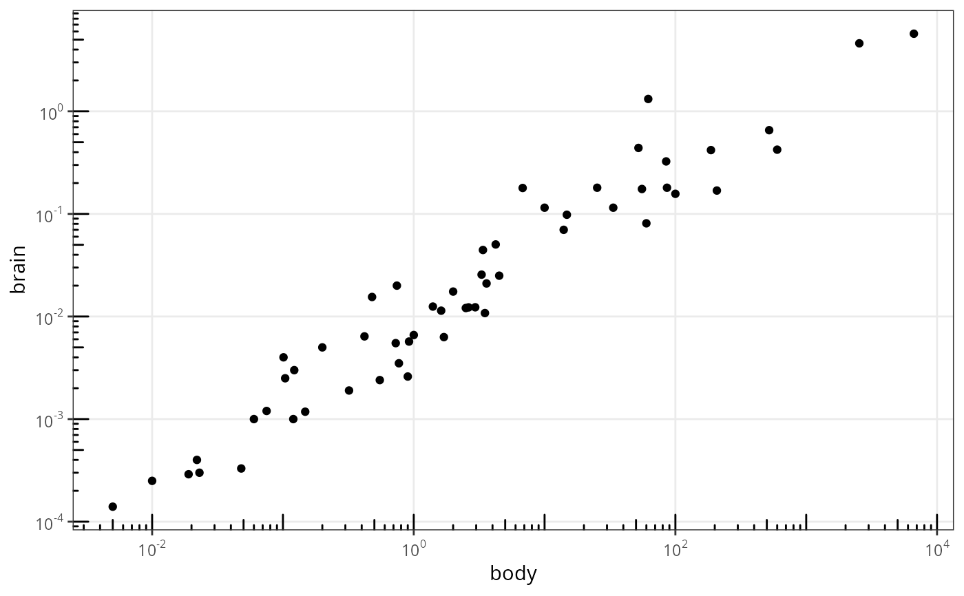 scale_x_continuous(name = "body", labels = scales::label_math(10^.x)) +