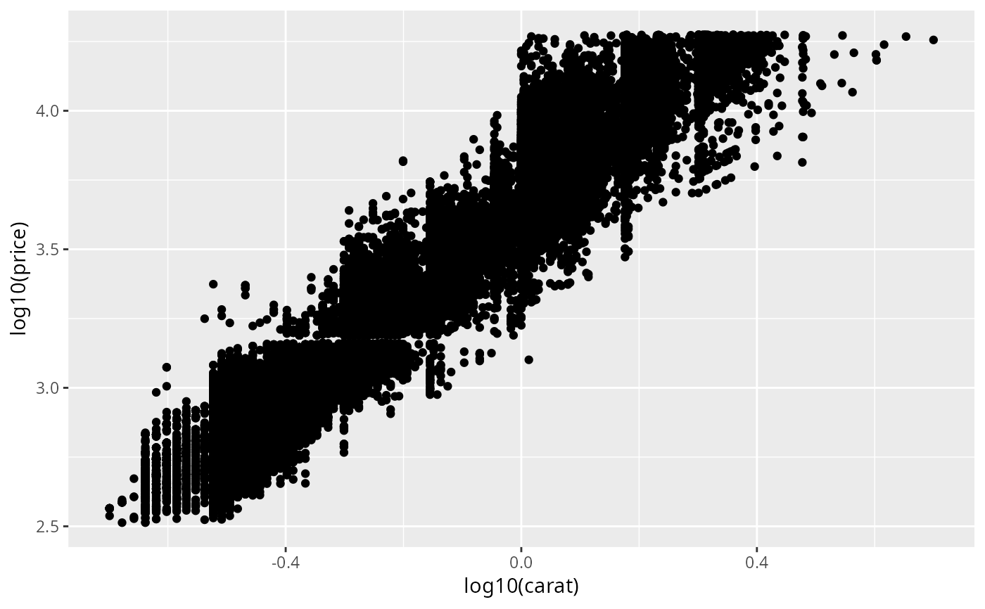 ggplot(diamonds, aes(log10(carat), log10(price))) +