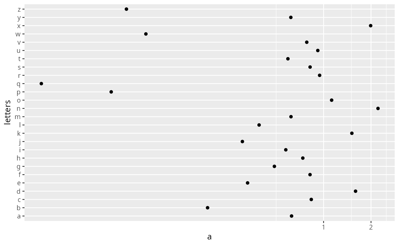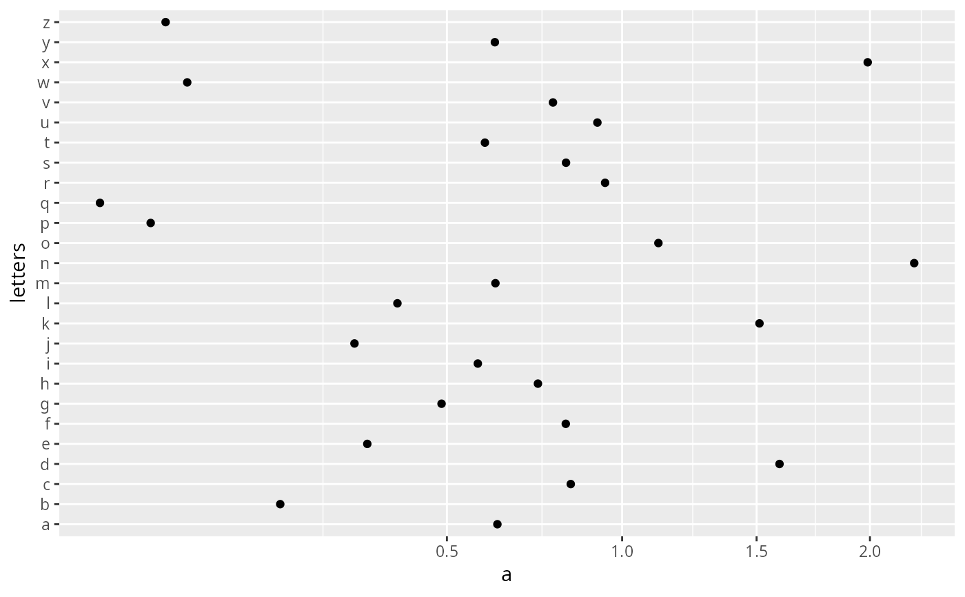 plot <- ggplot(df,aes(a,letters)) + geom_point()