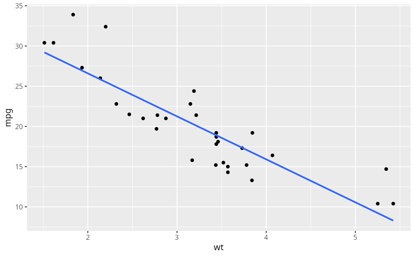 p <- ggplot(mtcars, aes(mpg, wt)) +