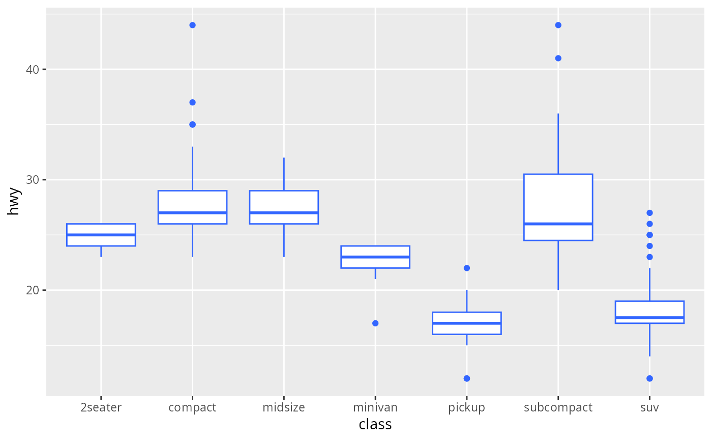 geom_boxplot()andstat_boxplot(). For more information about overriding these connections, see how the stat and geom arguments work.- coef