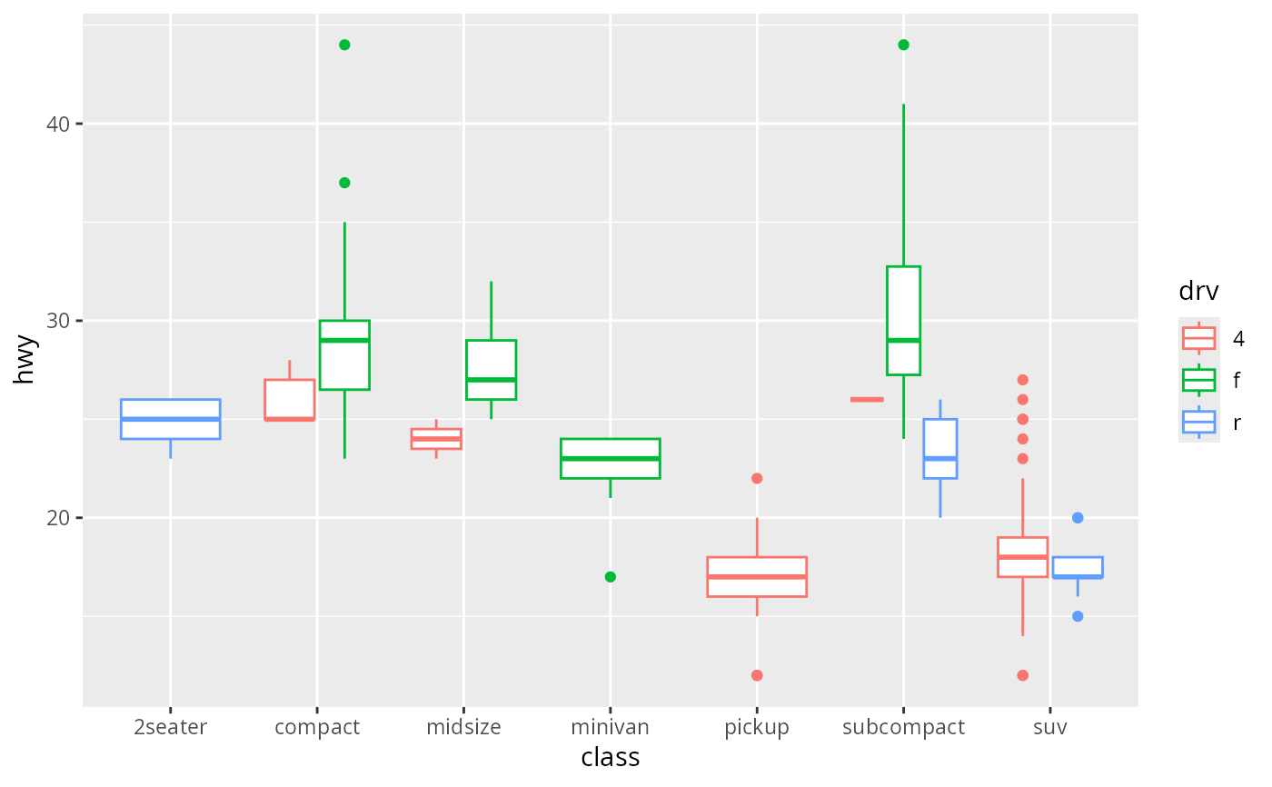 # Boxplots are automatically dodged when any aesthetic is a factor