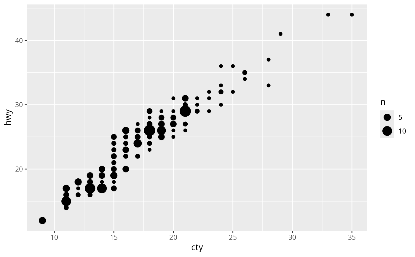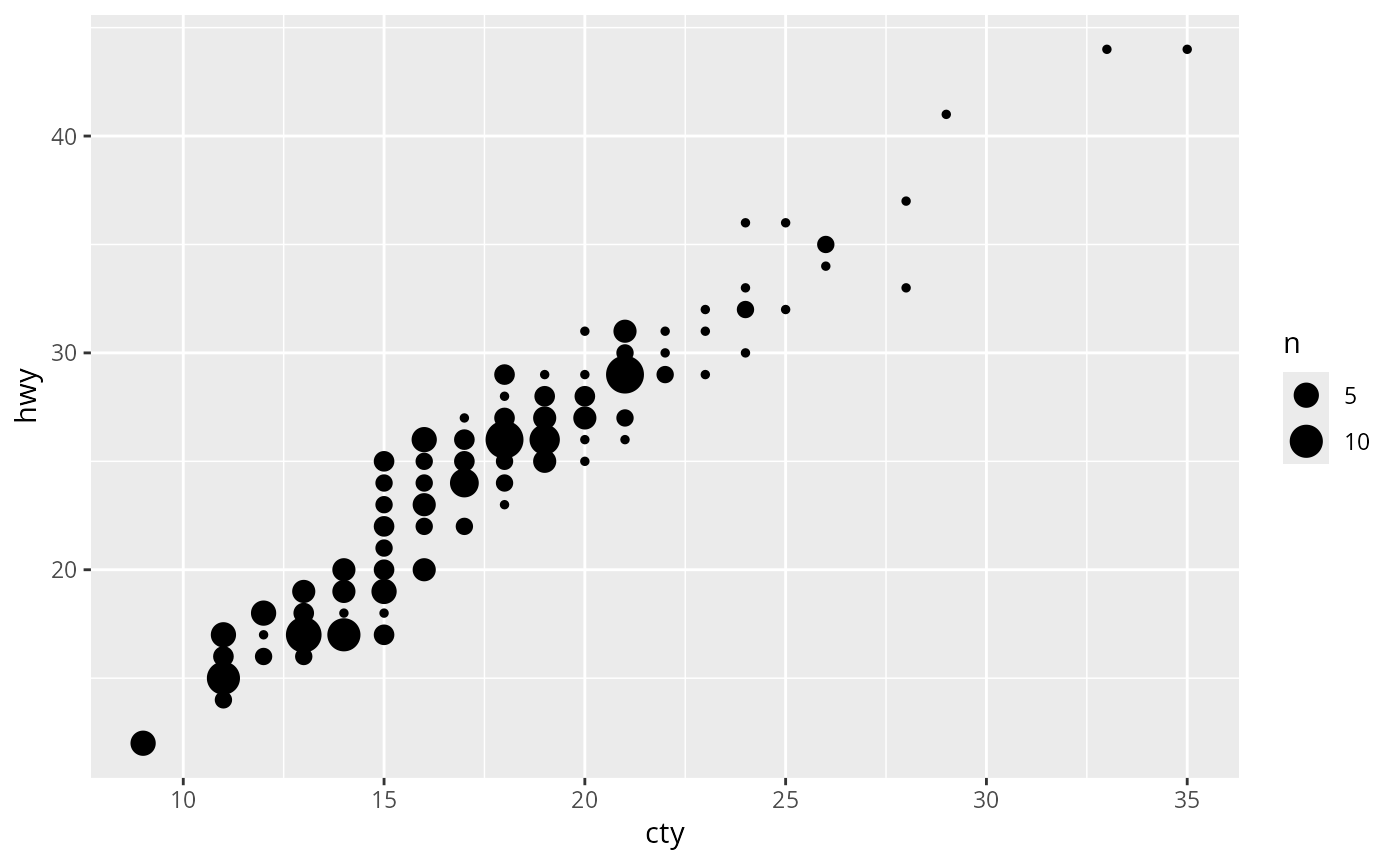 geom_count()andstat_sum(). For more information about overriding these connections, see how the stat and geom arguments work.