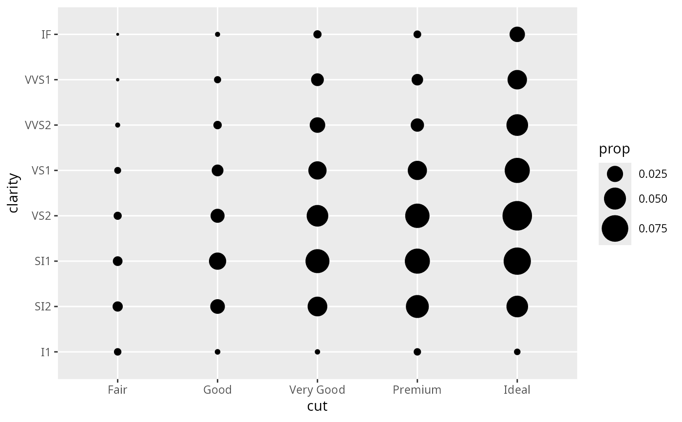 d + geom_count(aes(size = after_stat(prop), group = cut)) +