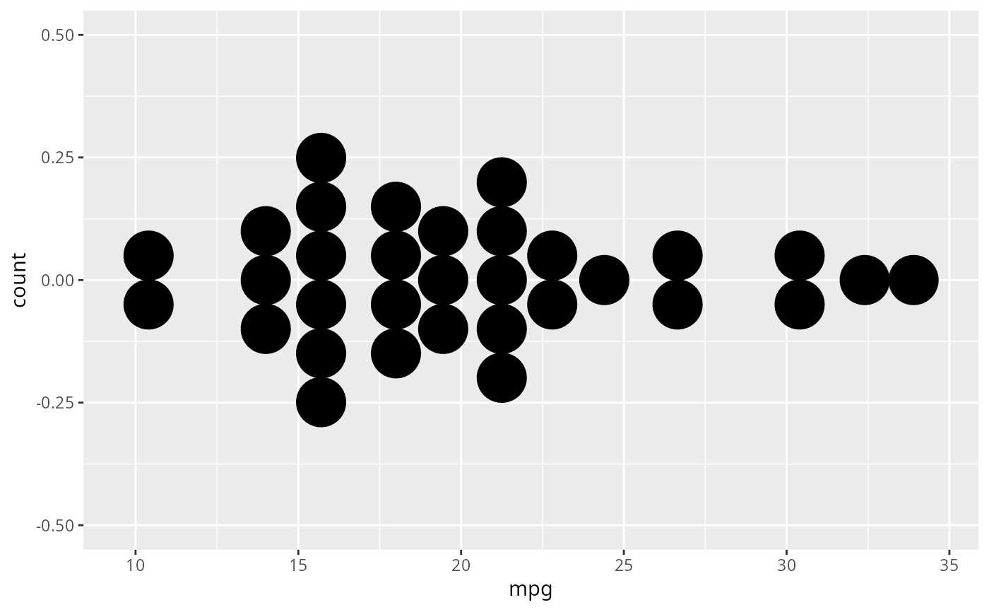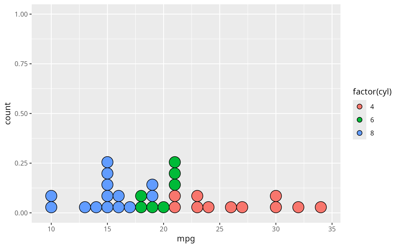 geom_dotplot(stackgroups = TRUE, binwidth = 1, method = "histodot")