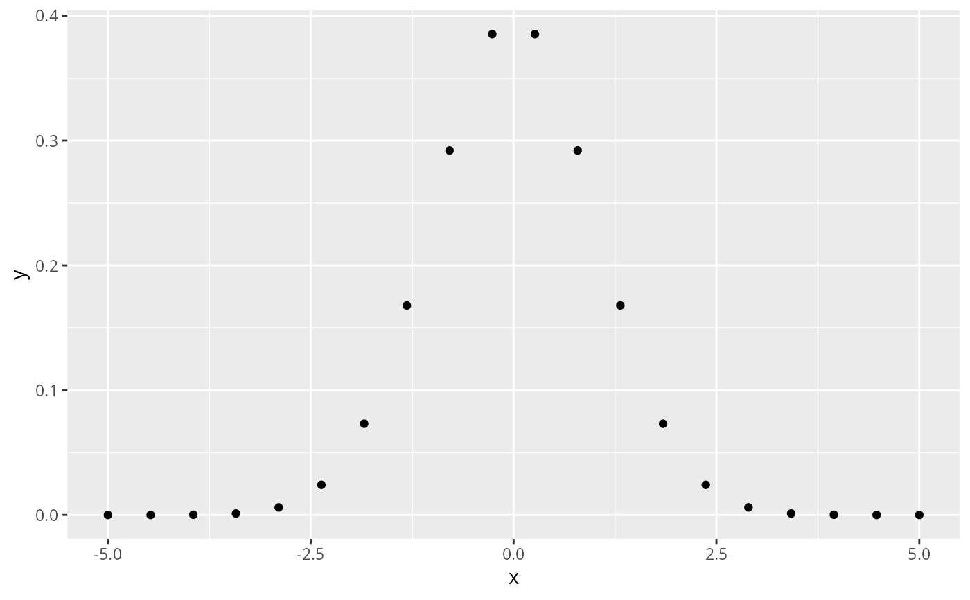 base + stat_function(fun = dnorm, geom = "point")