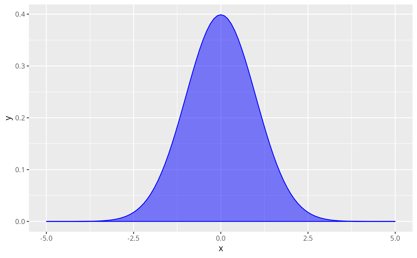 base + stat_function(fun = dnorm, geom = "polygon", color = "blue", fill = "blue", alpha = 0.5)