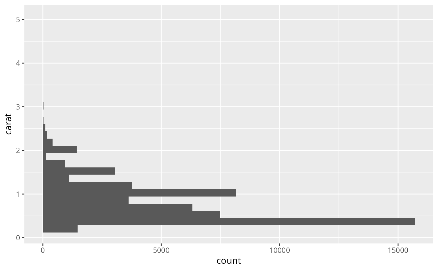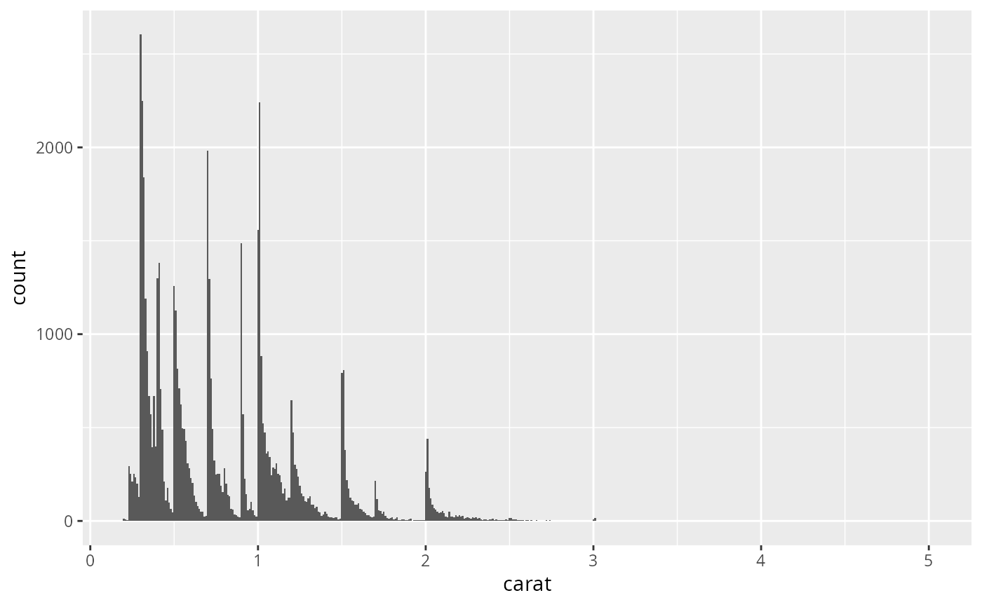 geom_histogram()/geom_freqpoly()andstat_bin(). For more information at overriding these connections, see how the stat and geom arguments work.- center, boundary