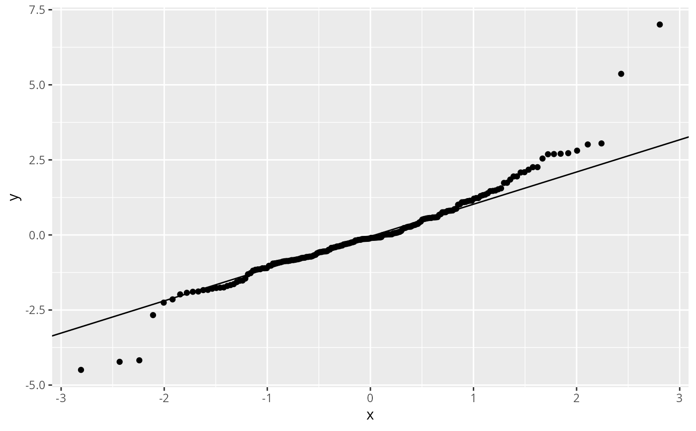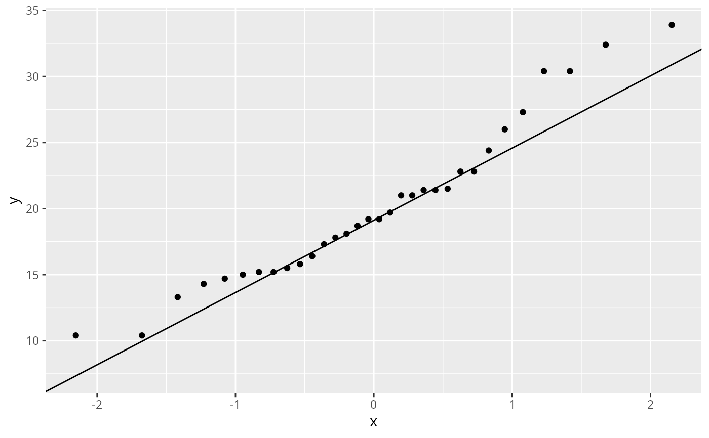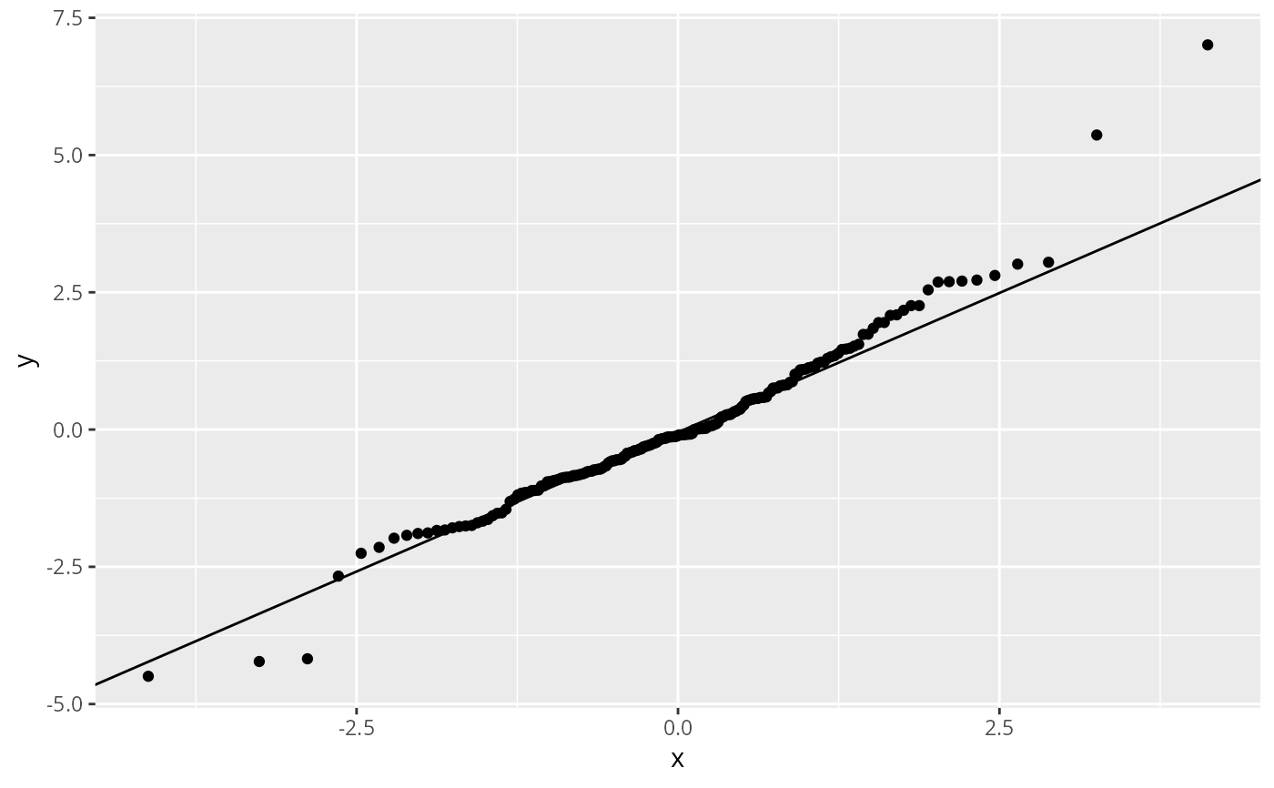 stat_qq_line() understands the following aesthetics. Required aesthetics are displayed in bold and defaults are displayed for optional aesthetics:
