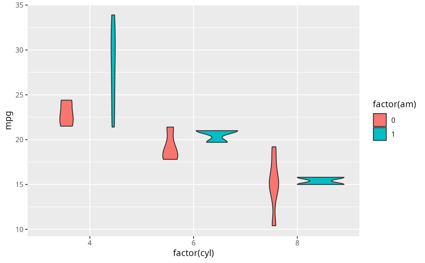 geom_violin()andstat_ydensity(). For more information about overriding these connections, see how the stat and geom arguments work.- bw