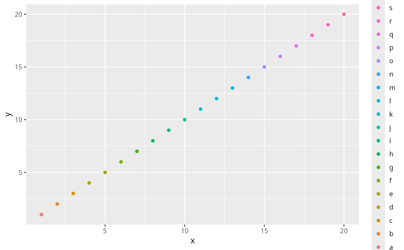 df <- data.frame(x = 1:20, y = 1:20, color = letters[1:20])