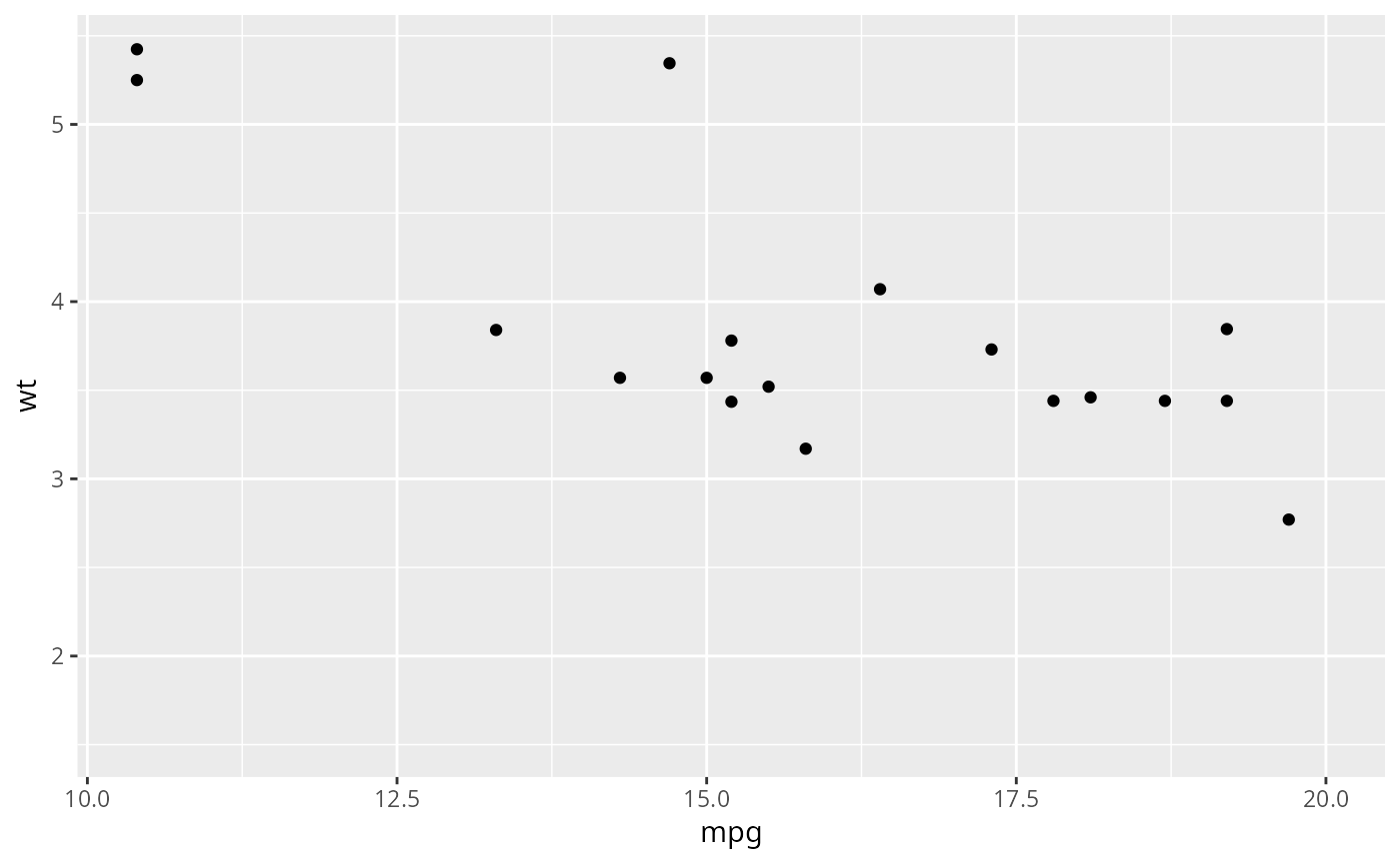 ggplot(mtcars, aes(mpg, wt)) +