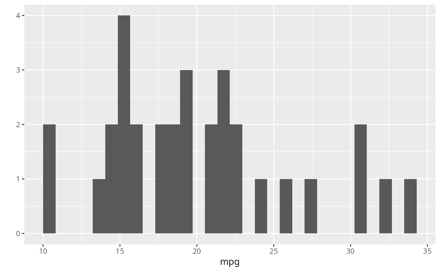 #> `stat_bin()` using `bins = 30`. Pick better value `binwidth`.