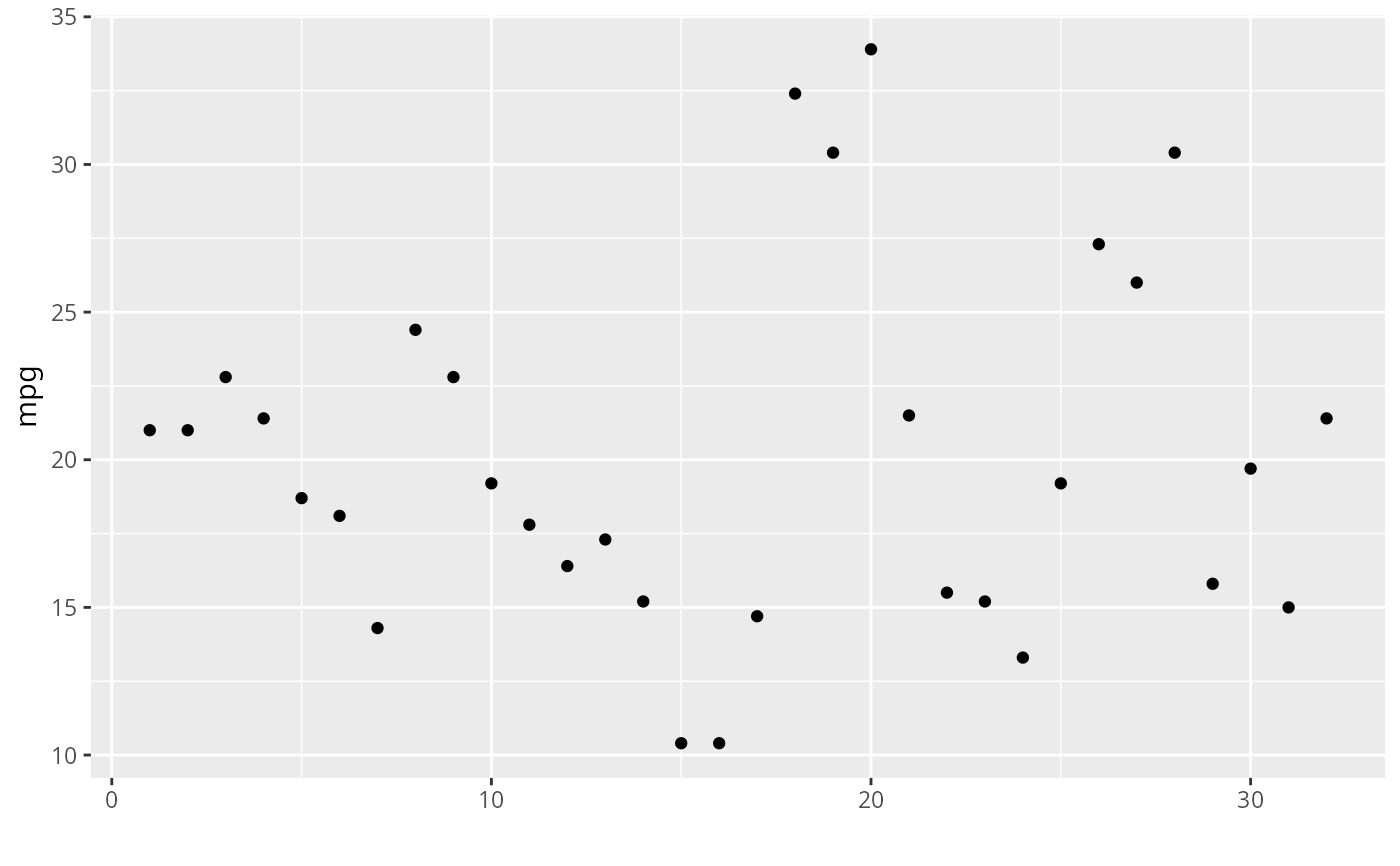 # just y supplied = scatterplot, with x = seq_along(y)