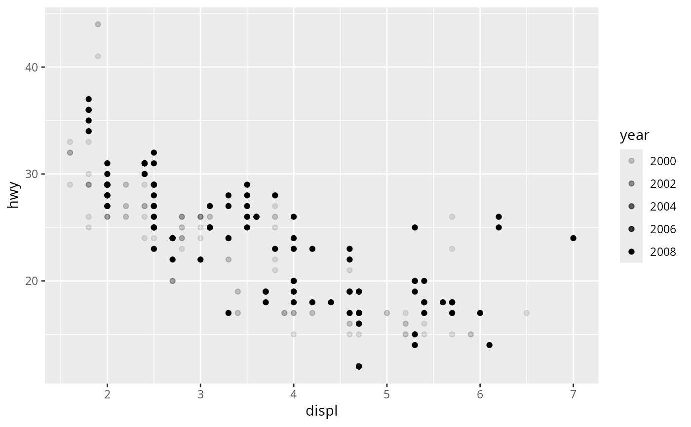 Other alpha scales: scale_alpha_manual(), scale_alpha_identity().