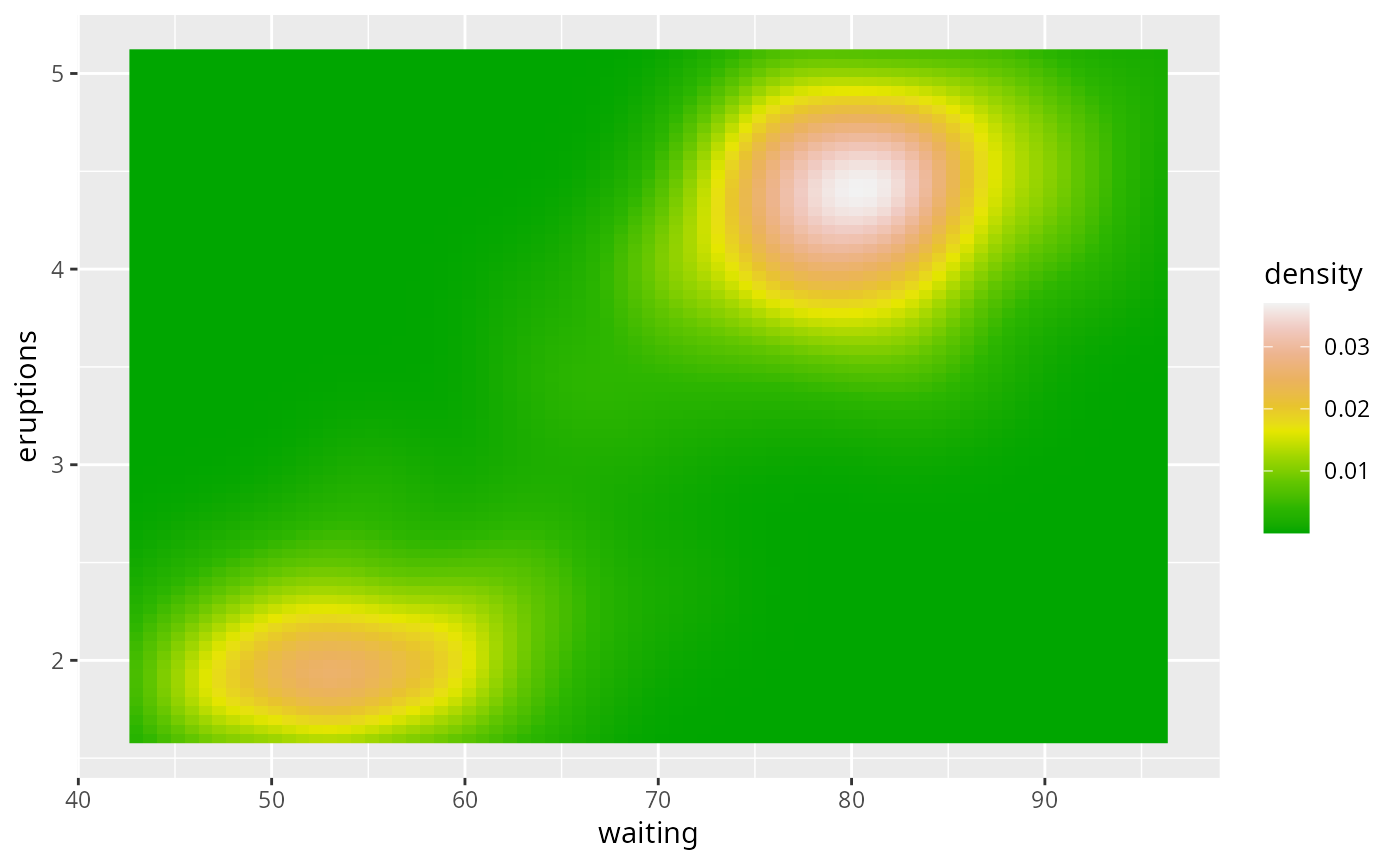 ggplot(faithfuld, aes(waiting, eruptions)) +